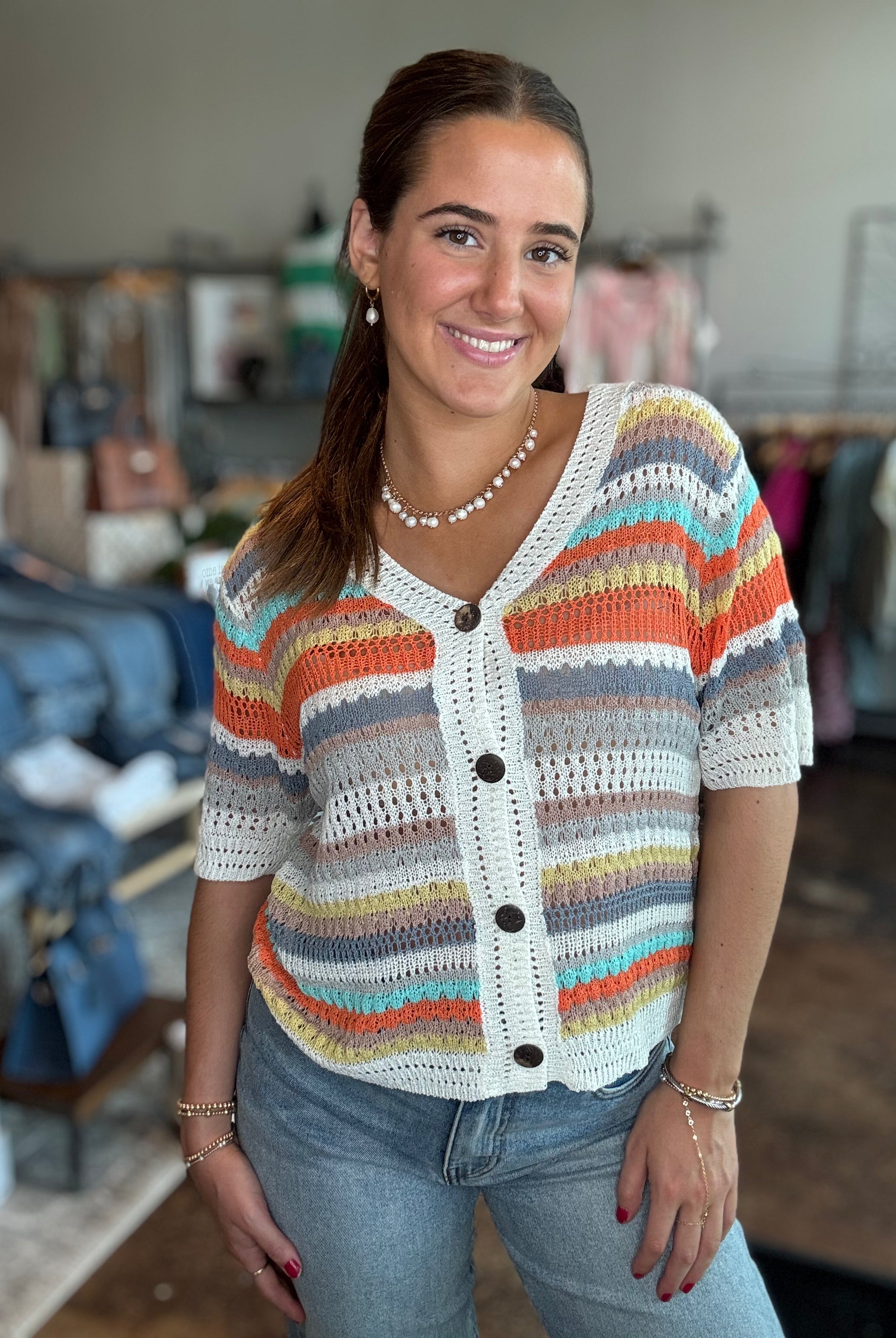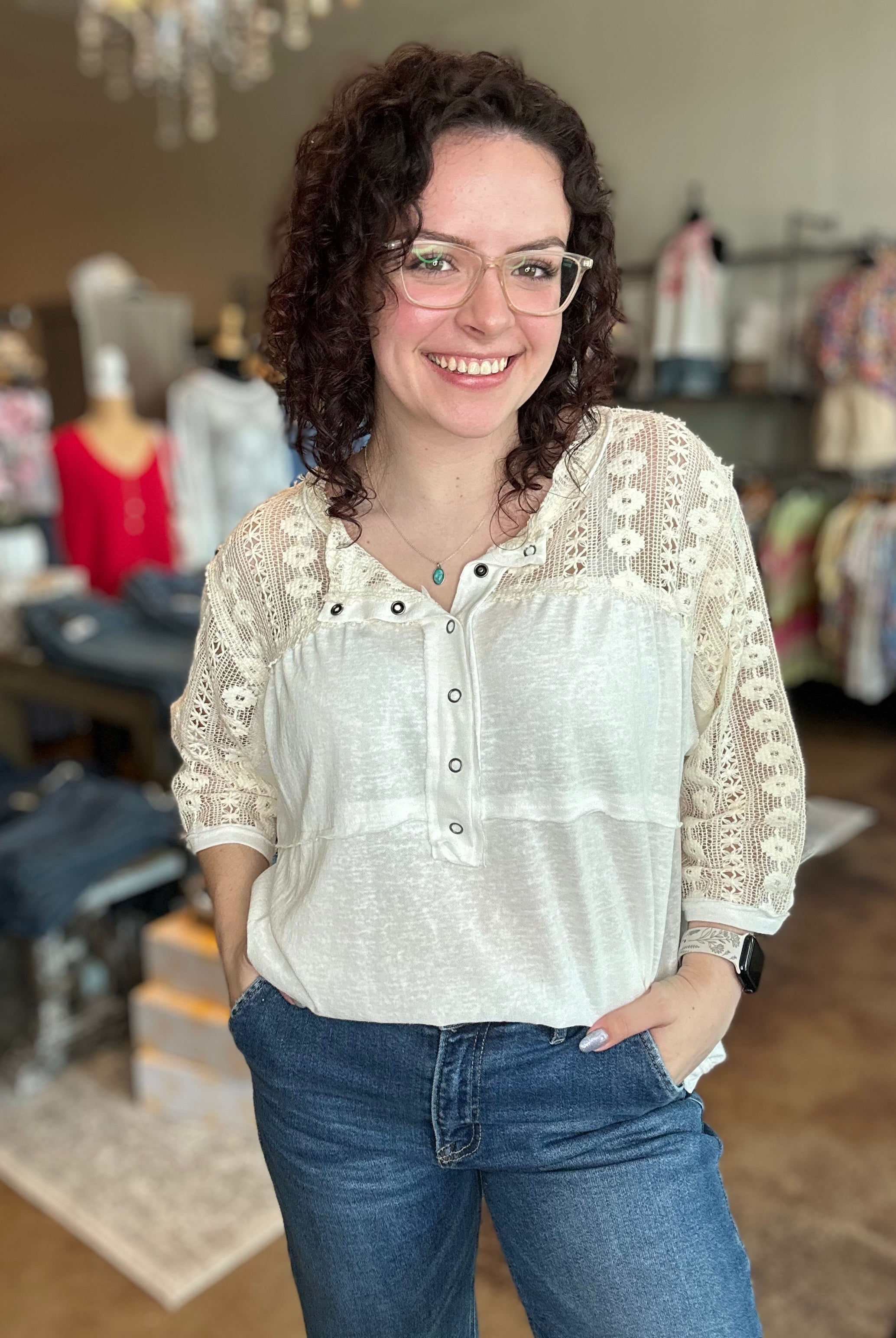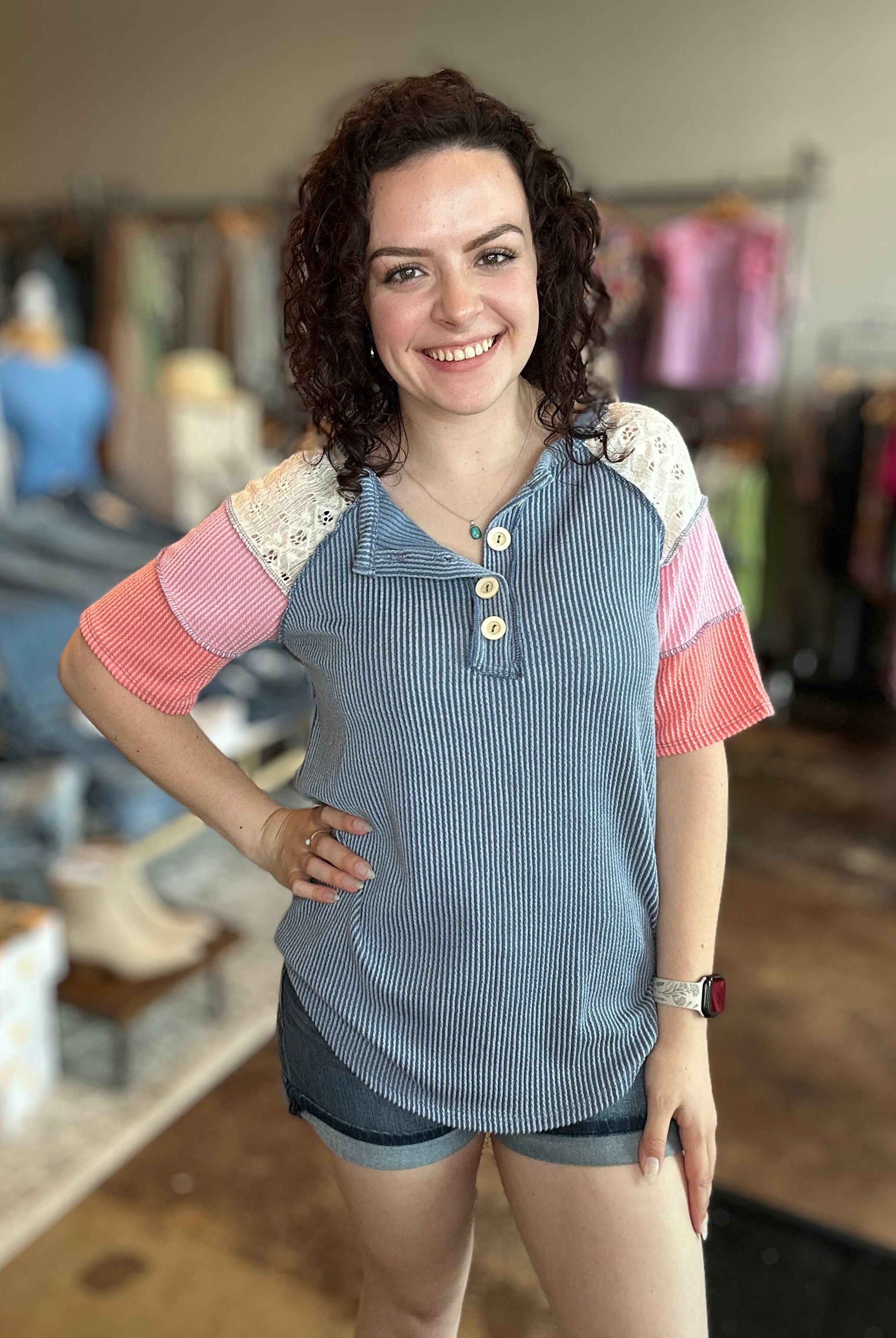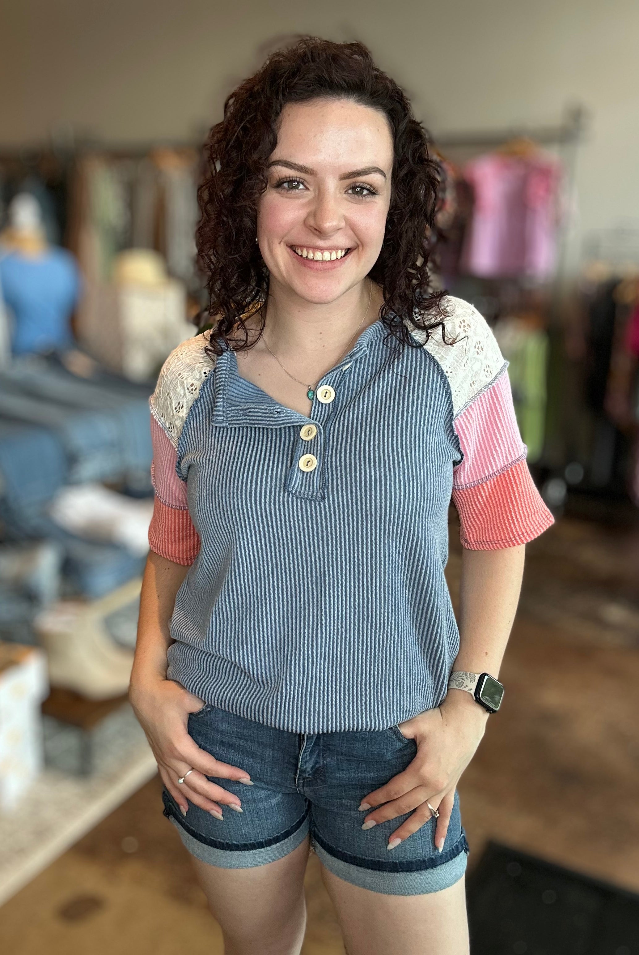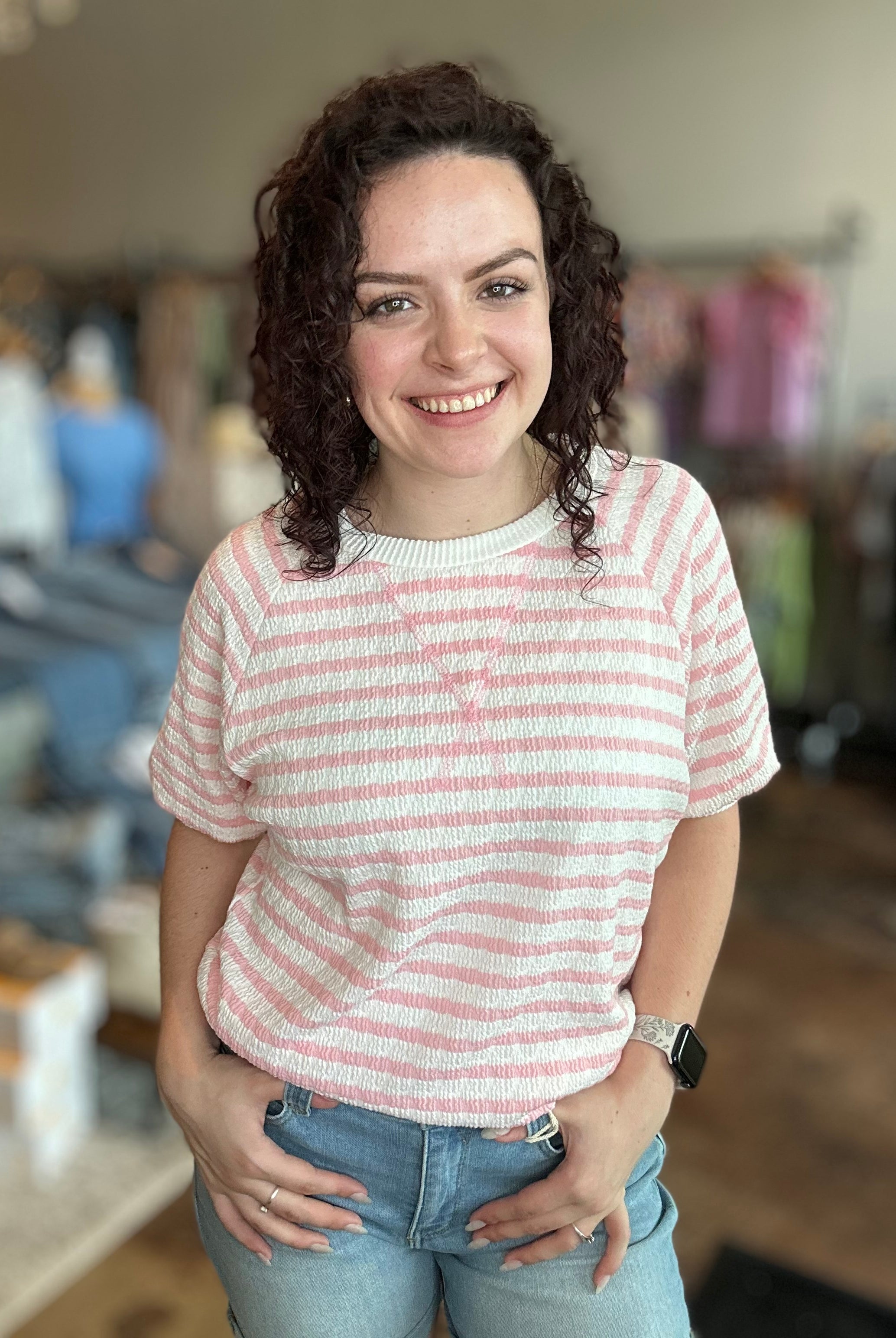 Our curated collection of women’s tops are perfect for refreshing your spring wardrobe. From vibrant graphic tees to flutter sleeves and our new all-time favorite crochet tops, we have something for every occasion. Whether it’s a date night, a day at the office, or a casual errand run, we’ve got you covered. We’re always updating with new arrivals so be sure to check back often and discover the latest additions to our collection!