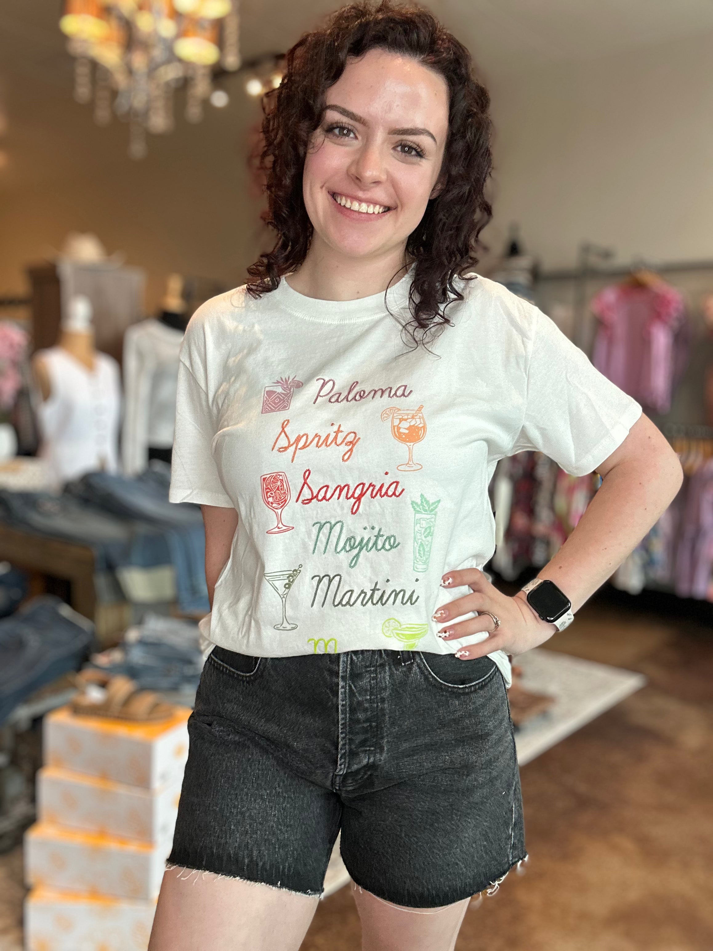 This eye-catching tee features a vibrant multicolor cocktail screen print that's sure to spark conversations. Crafted from 100% cotton jersey for exceptional comfort and breathability, it offers the relaxed fit you crave with the durability you need. Perfect for pairing with jeans, shorts, or layering under jackets, this versatile piece transitions effortlessly from casual brunches to evening gatherings.