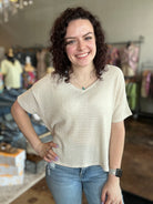 This drop shoulder short sleeve jacquard sweater is a perfect addition to any wardrobe. The unique jacquard design adds a touch of sophistication, while the loose and airy drop shoulder fit provides comfort and style. Made with high-quality materials, this sweater is both fashionable and practical.
