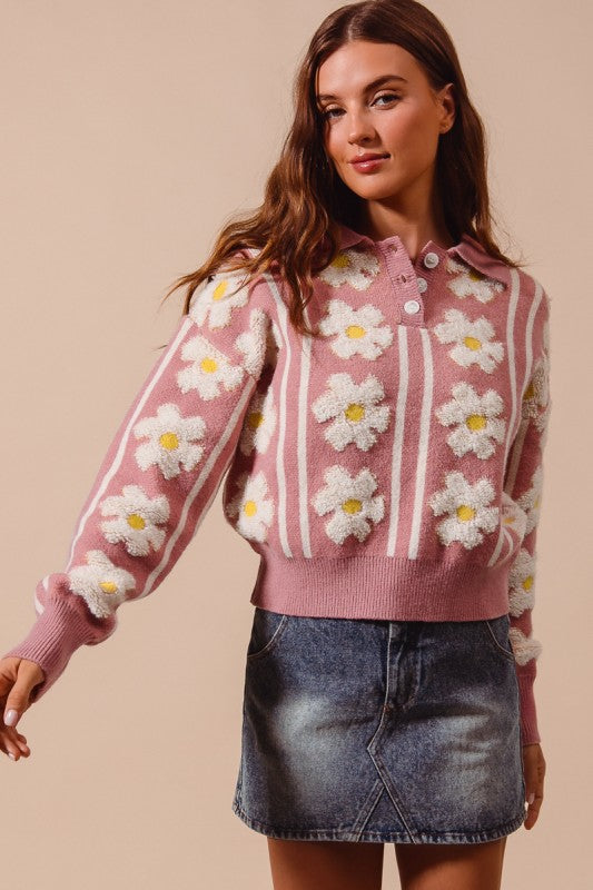 Elevate your everyday style with this charming Floral Stripe Polo Collar Sweater Top, where classic sophistication meets modern flair. The delicate floral pattern woven throughout the striped design adds visual interest and dimension, while the crisp polo collar brings polished refinement to any outfit. Crafted for comfort and versatility, this sweater top transitions seamlessly from casual weekends to professional settings. Choose between the soft, sophisticated Mauve/Ivory palette or the warm, neutral Oatmeal/Ivory combination—both designed to complement your existing wardrobe effortlessly. A timeless piece that delivers both style and wearability.