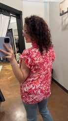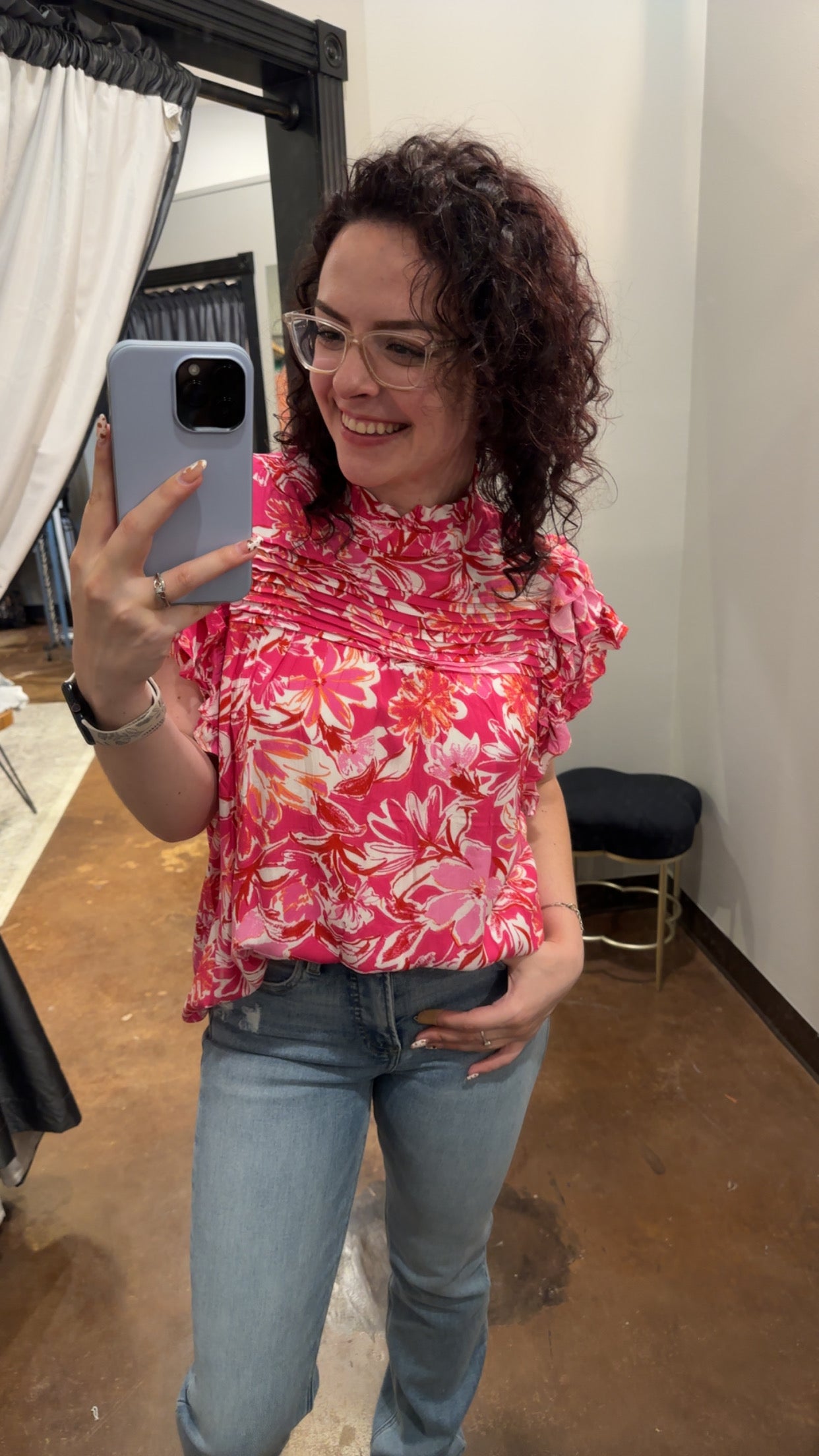 Fresh, flirty, and full of charm, our Pink Tropic Ruffle Top is your go-to piece for sun-soaked days and breezy evenings. Crafted in a vibrant tropical pink, this top features playful ruffle sleeves and a softly gathered ruffle neckline that adds a touch of romance to its breezy silhouette.