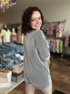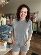 Meet your new favorite lounge companion: our Ribbed Short Sleeve Tee & Shorts Set. This cozy duo is the perfect blend of comfort and style, designed for those laid-back days when you want to feel chic without the effort. The tee features a relaxed fit with a subtle corded rib texture, adding just the right amount of detail to elevate your casual look. Paired with matching shorts that offer a flattering fit and breathable comfort, this set is ideal for lounging at home, running errands, or enjoying a sunny day out. Whether you're sipping iced coffee on the porch or catching up with friends, this set ensures you do it in style.