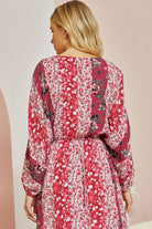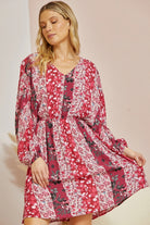 This dress features dolman sleeves with v neckline and elastic waistline. Fully lined, non sheer, woven.