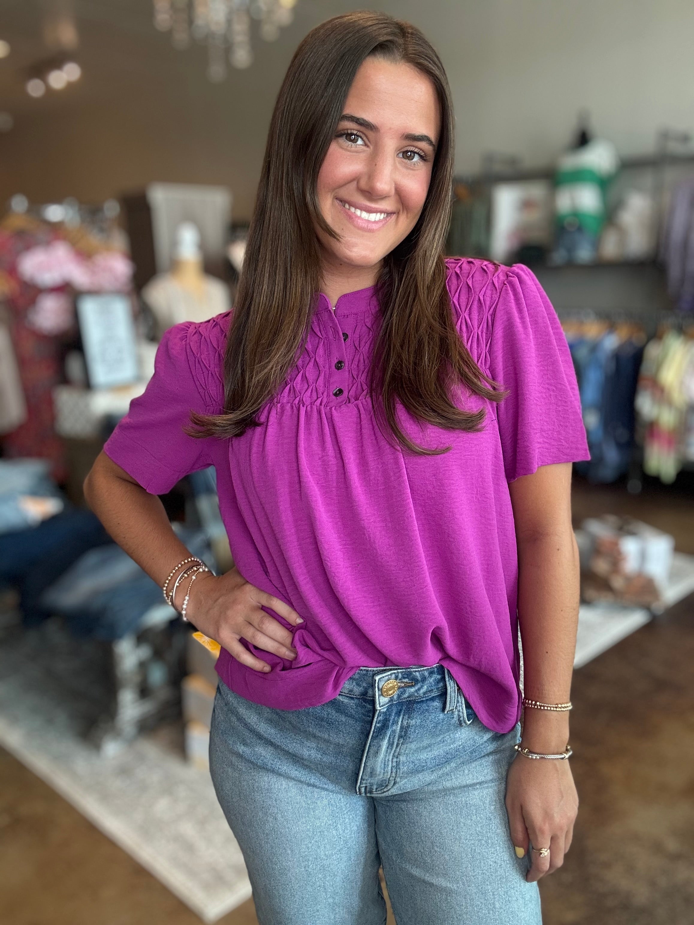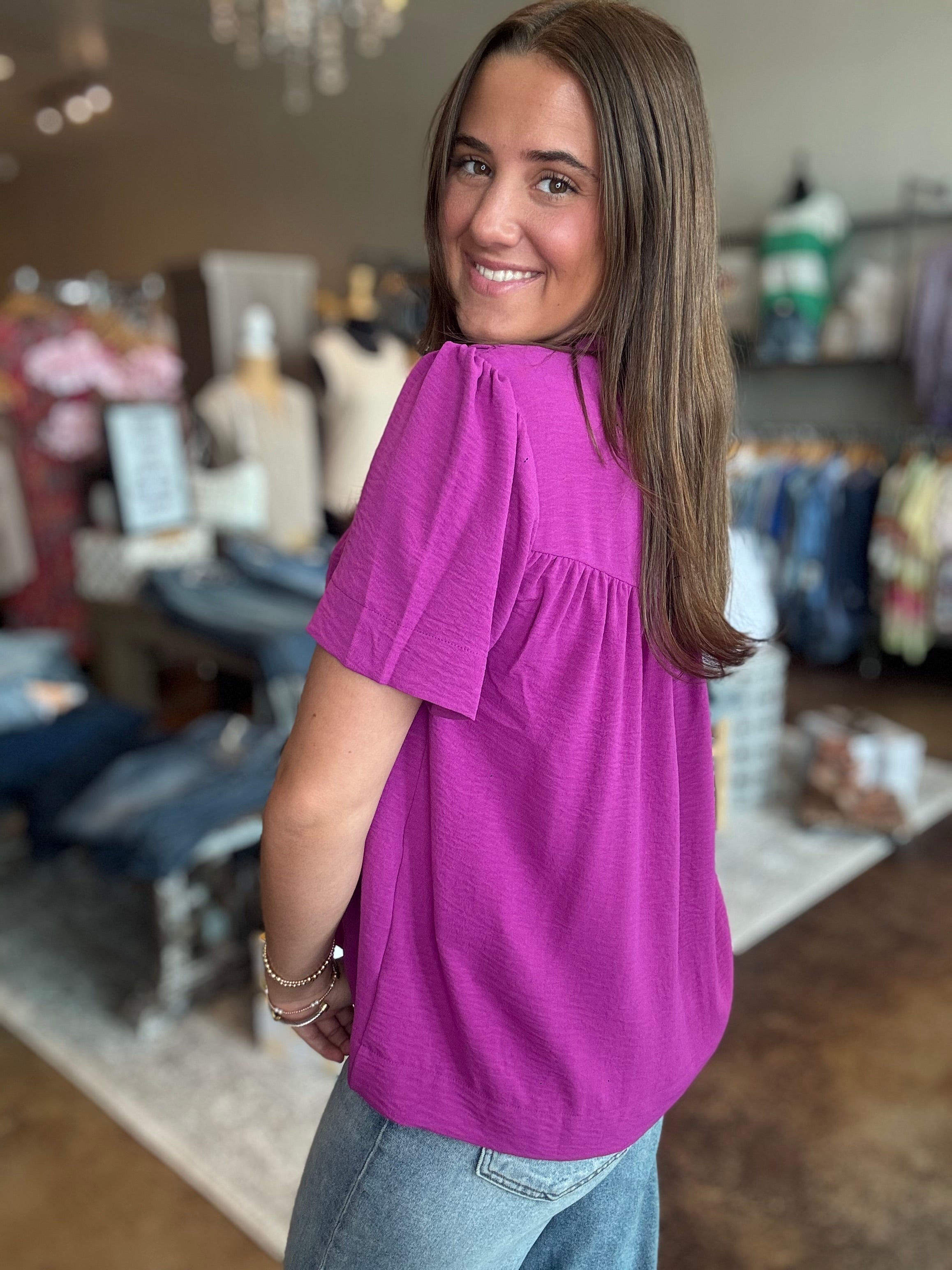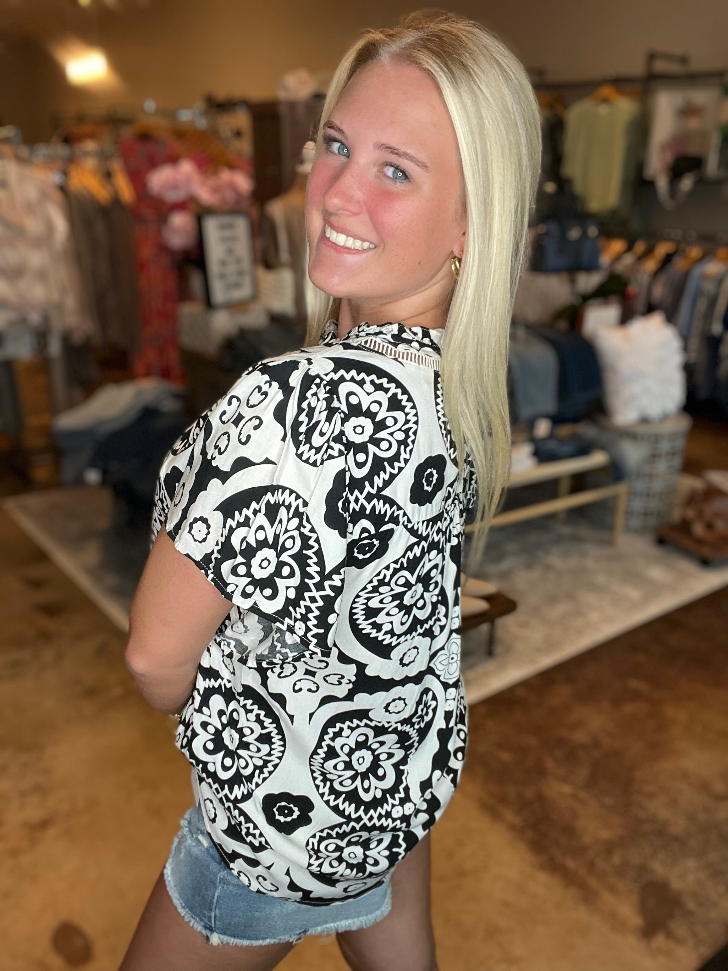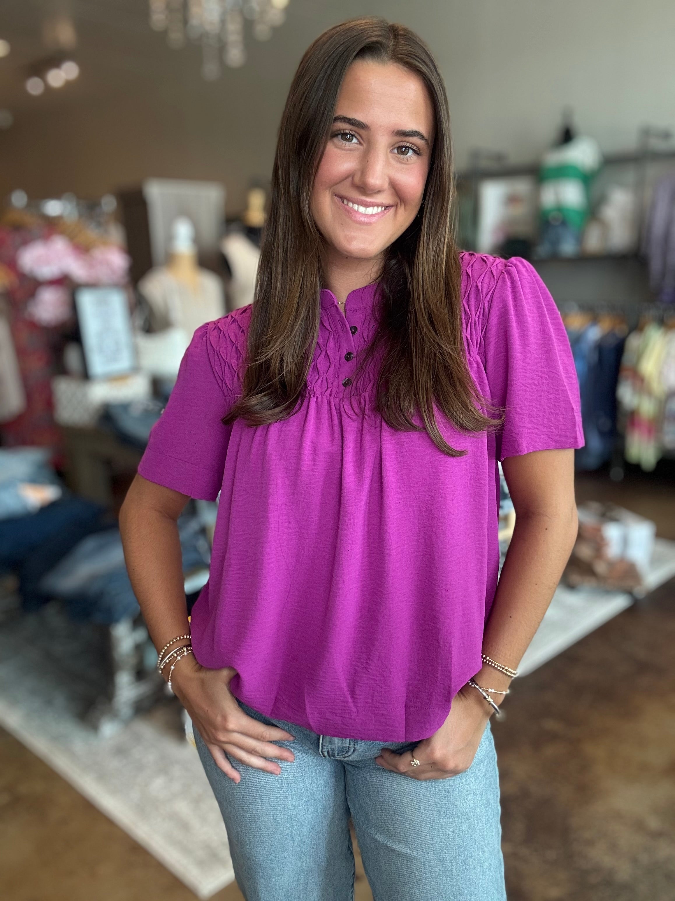 Floral Top W/ Shirring Detail Bubble Sleeve
