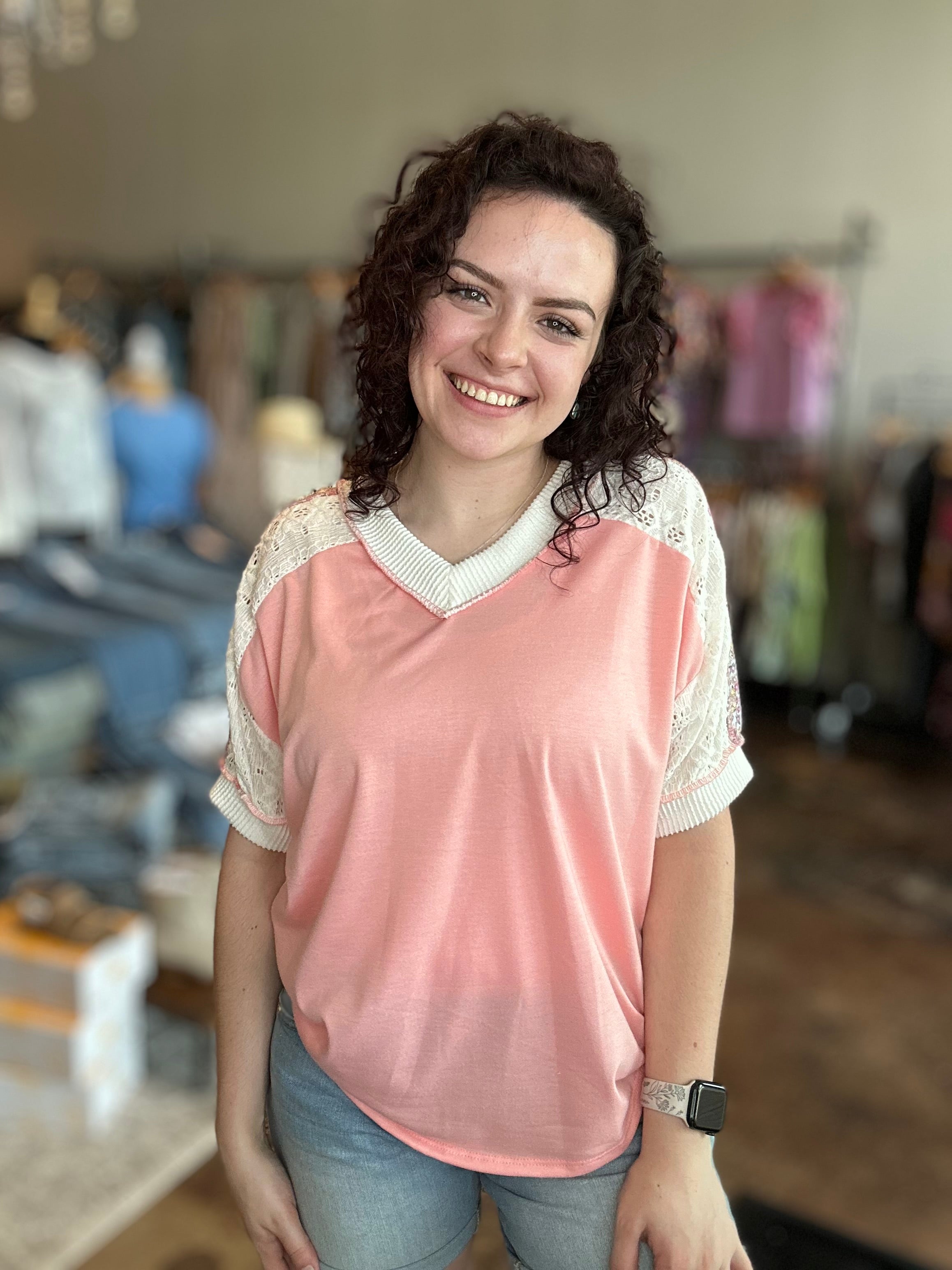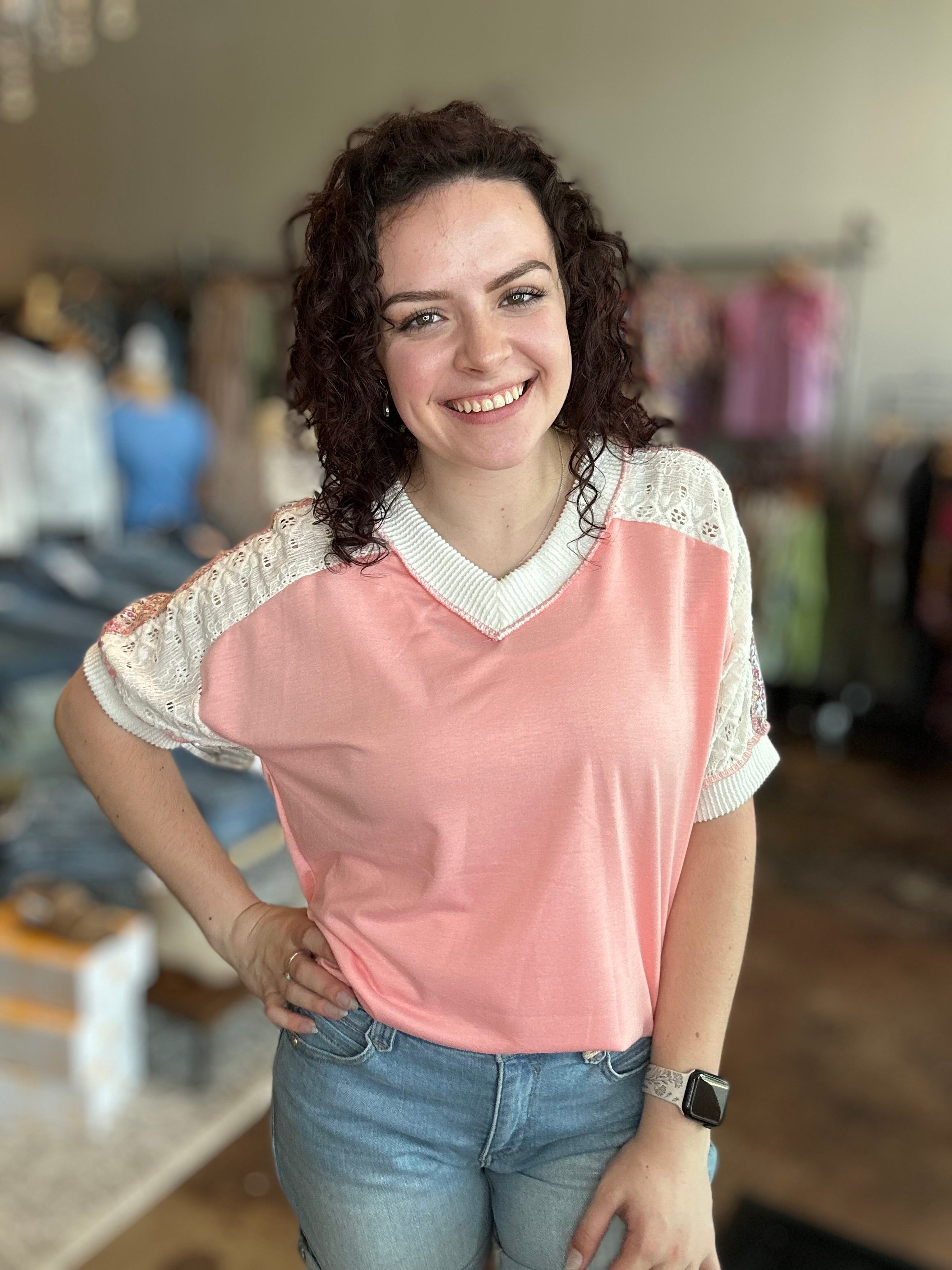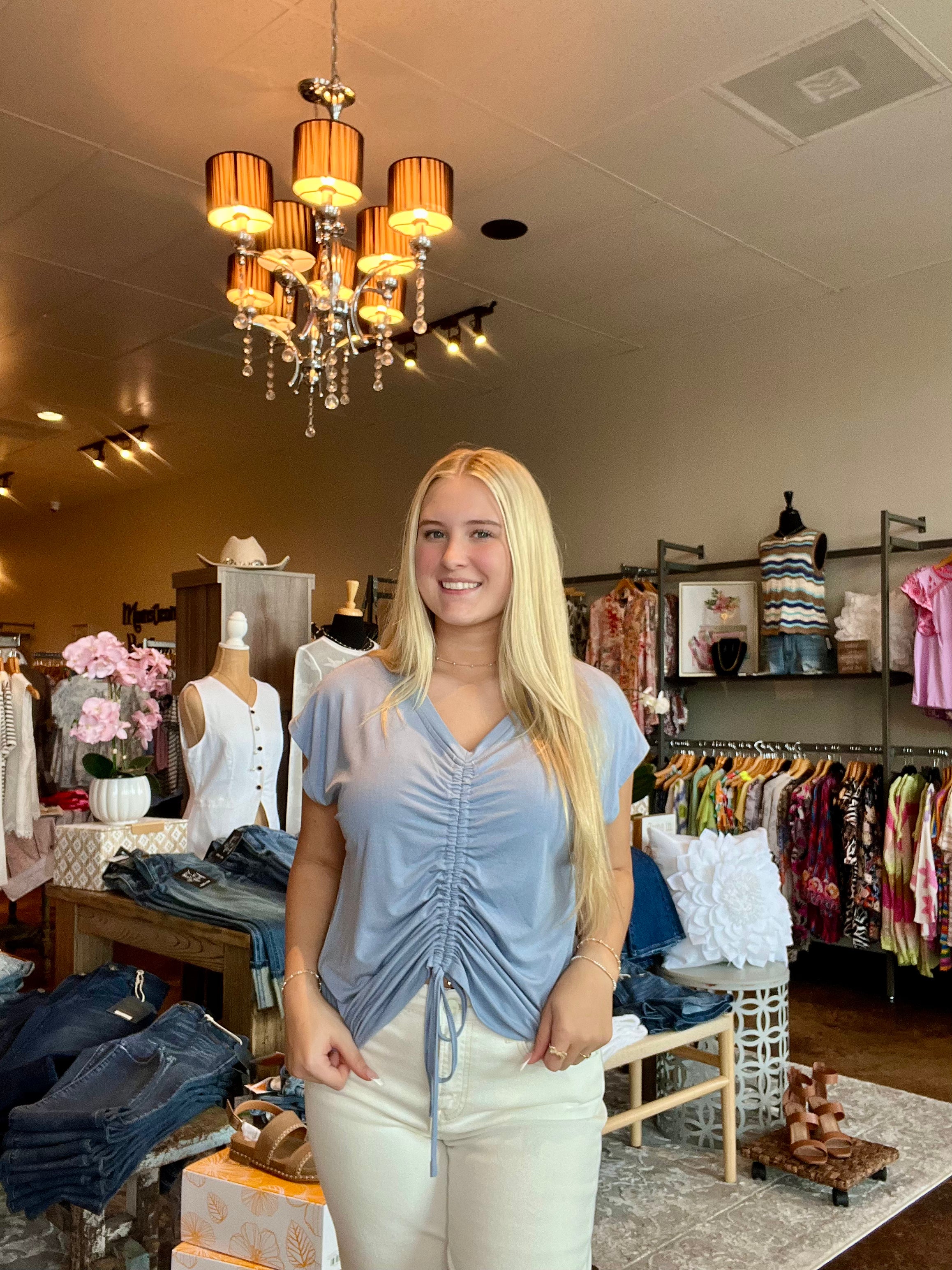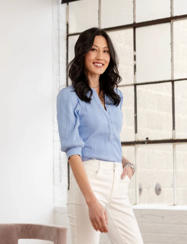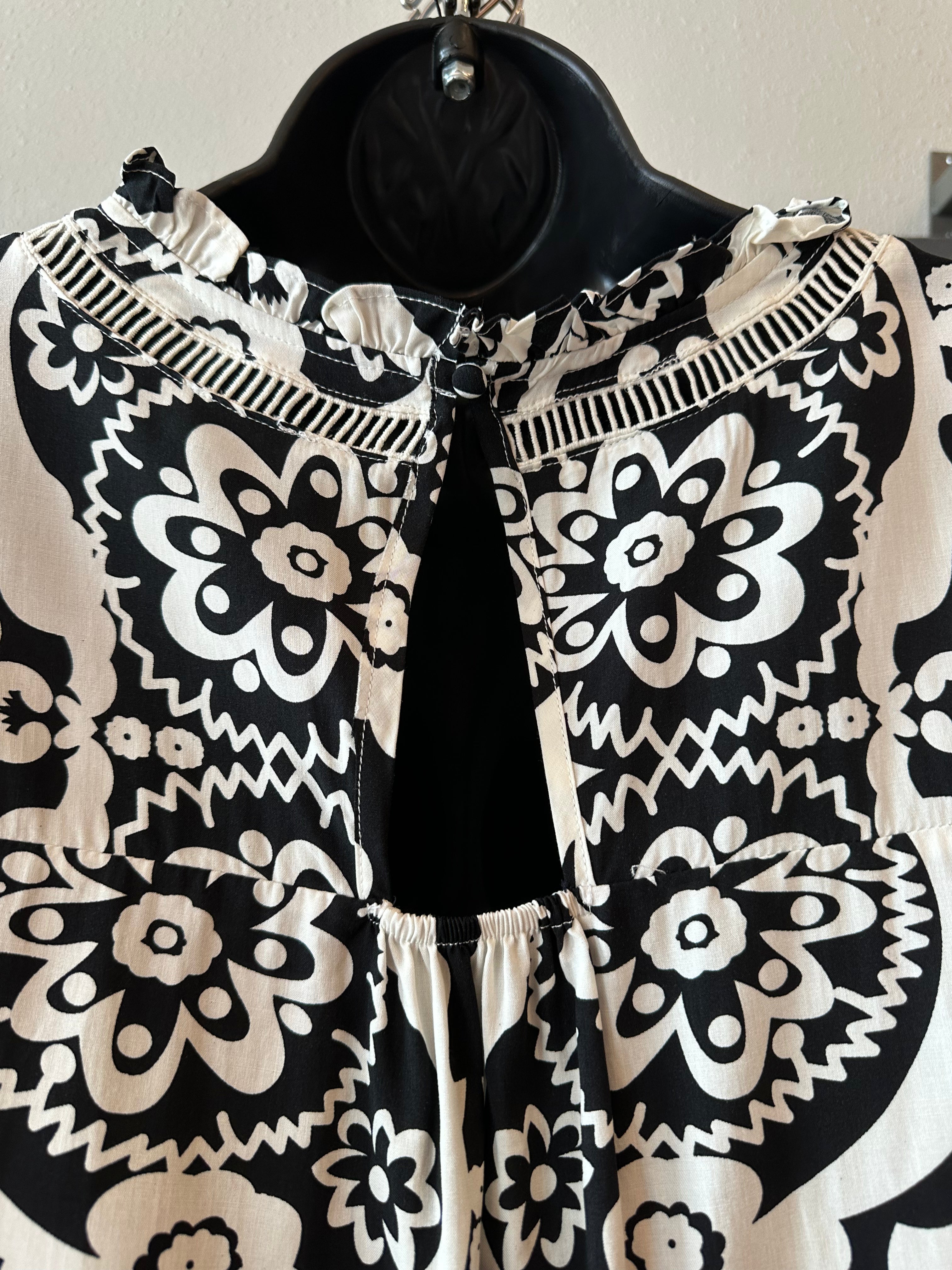 Floral Top W/ Shirring Detail Bubble Sleeve