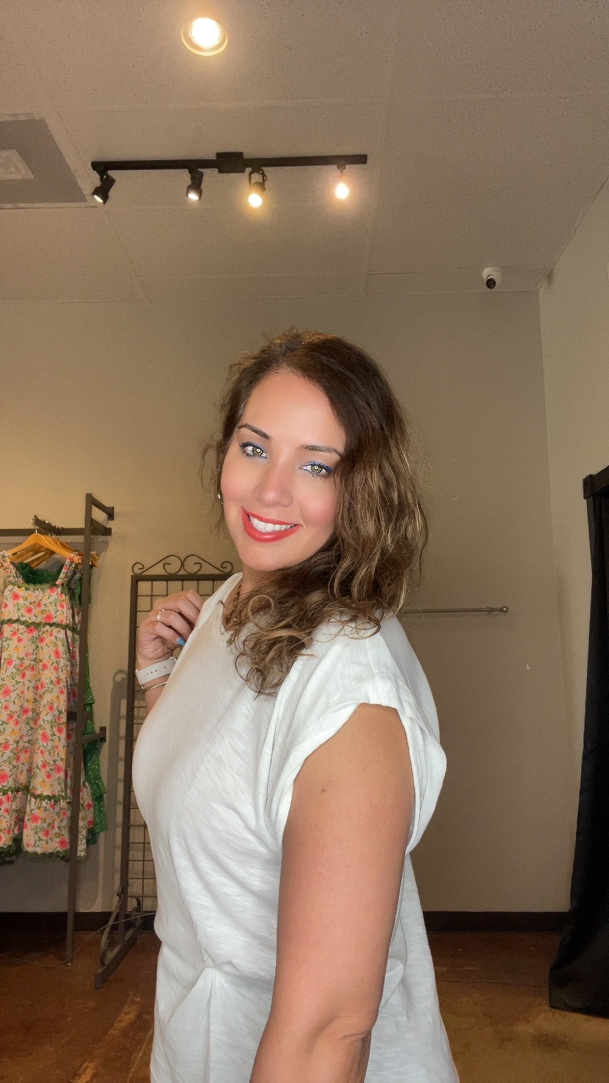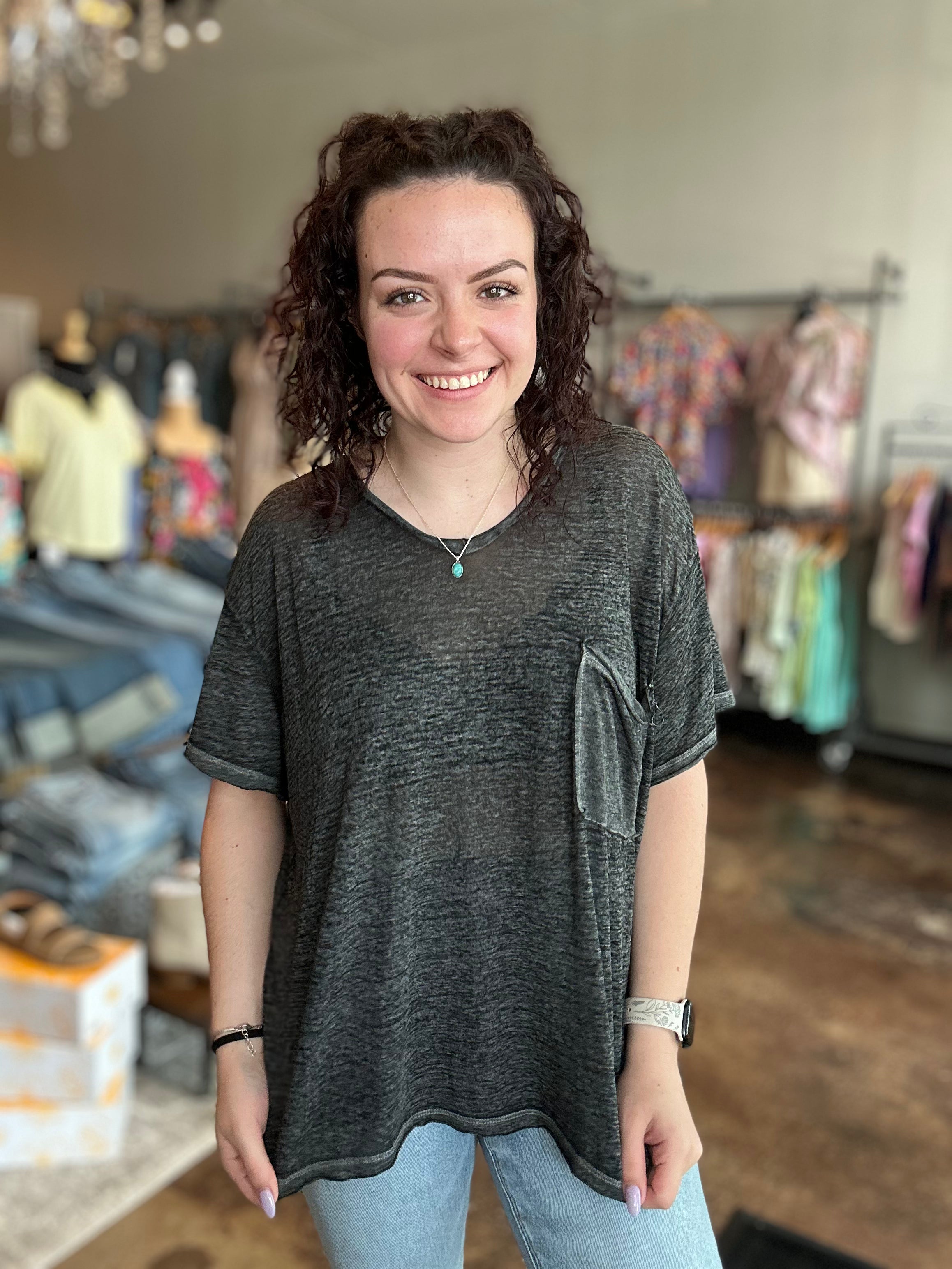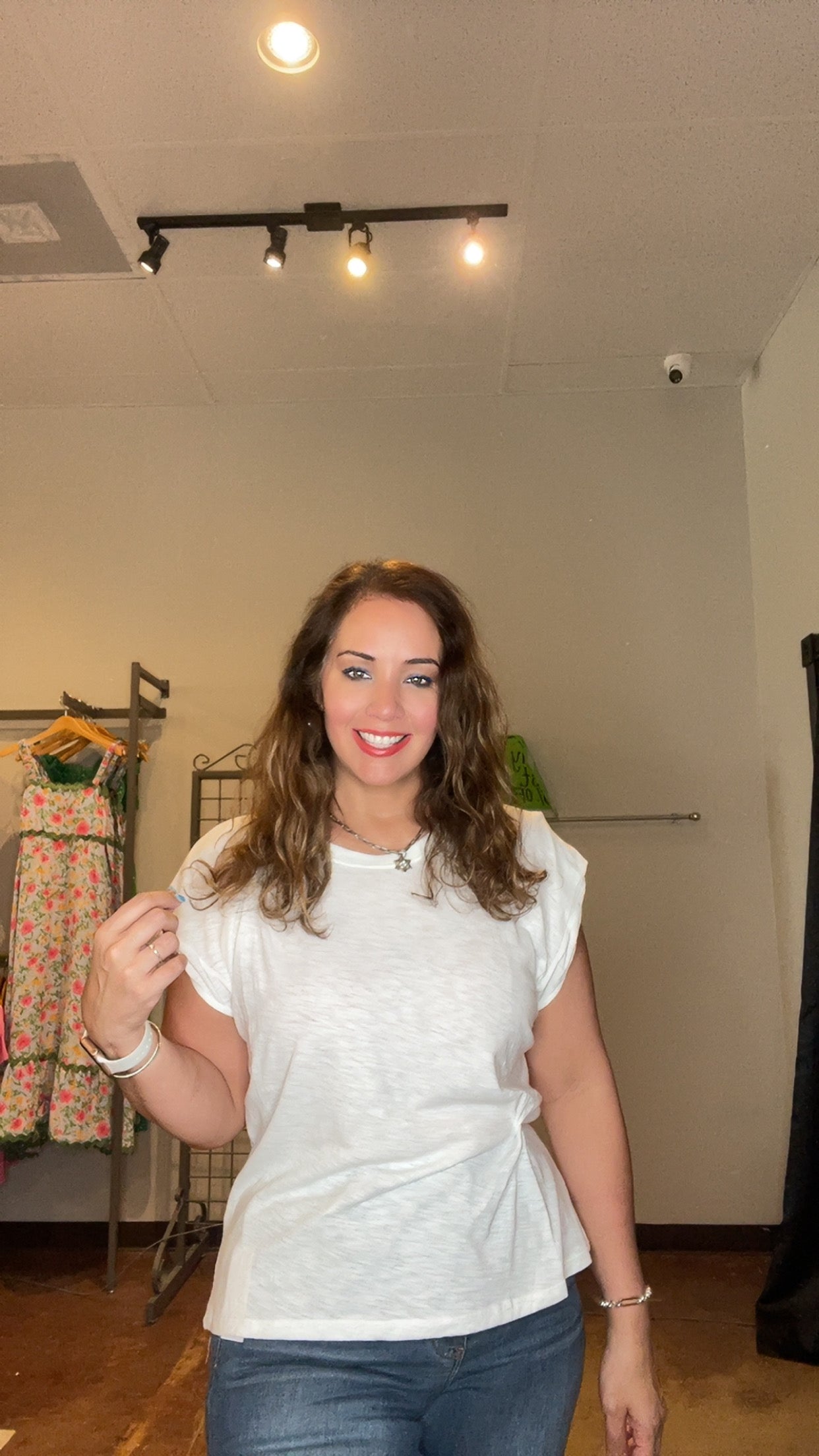 Raw Hem Short Sleeve V-Neck Gauze Top