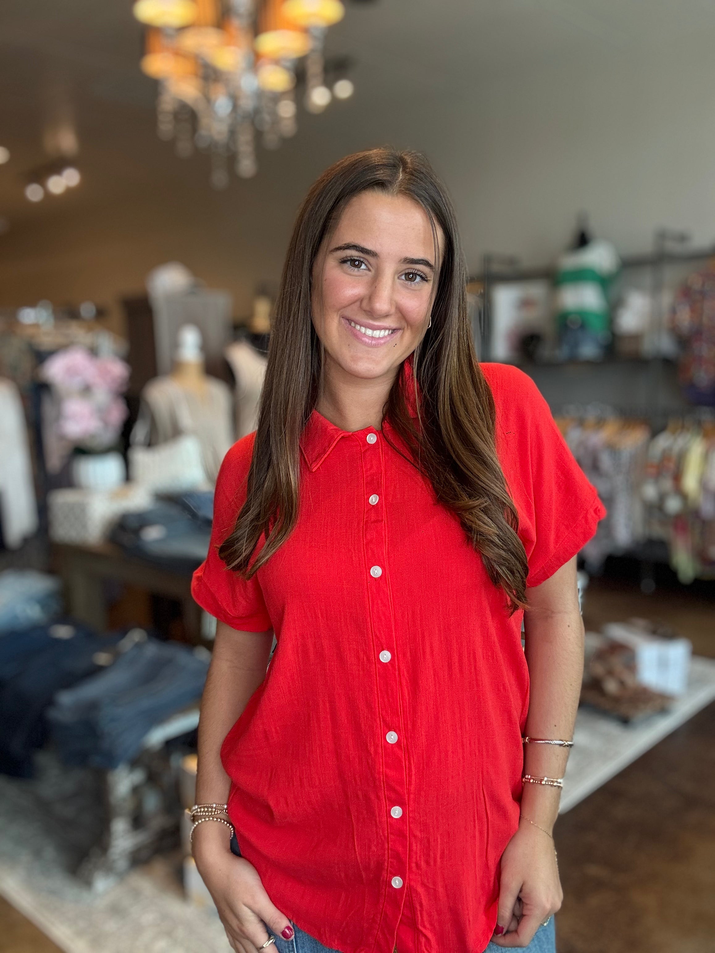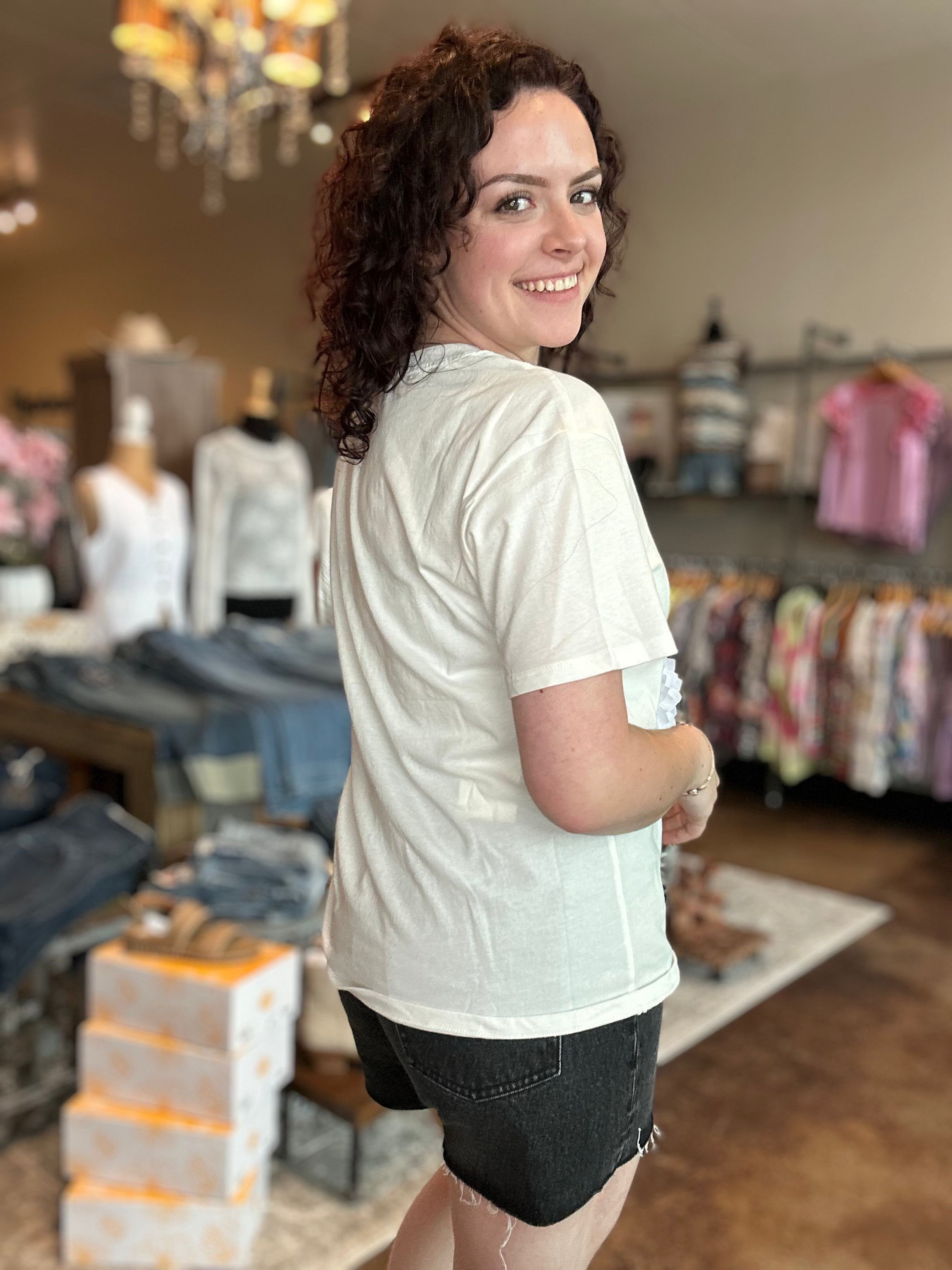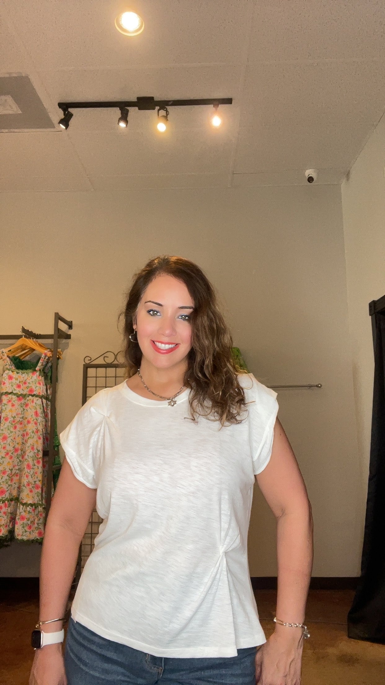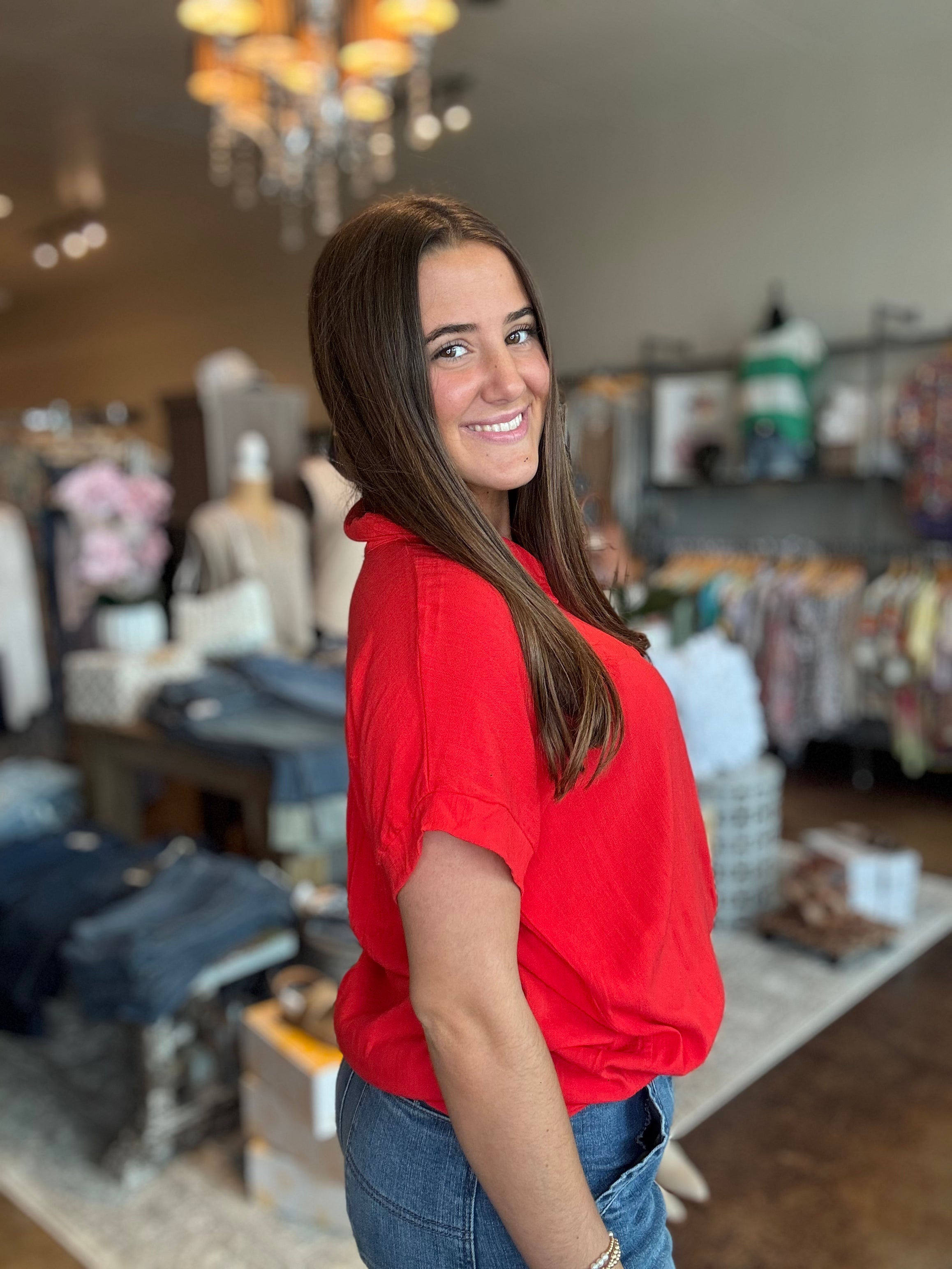 Raw Hem Short Sleeve V-Neck Gauze Top