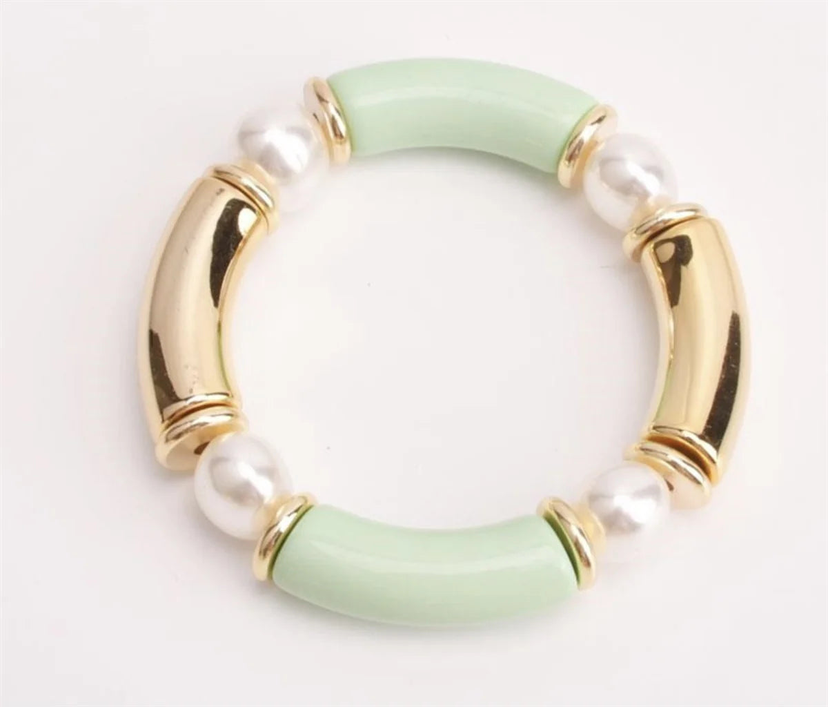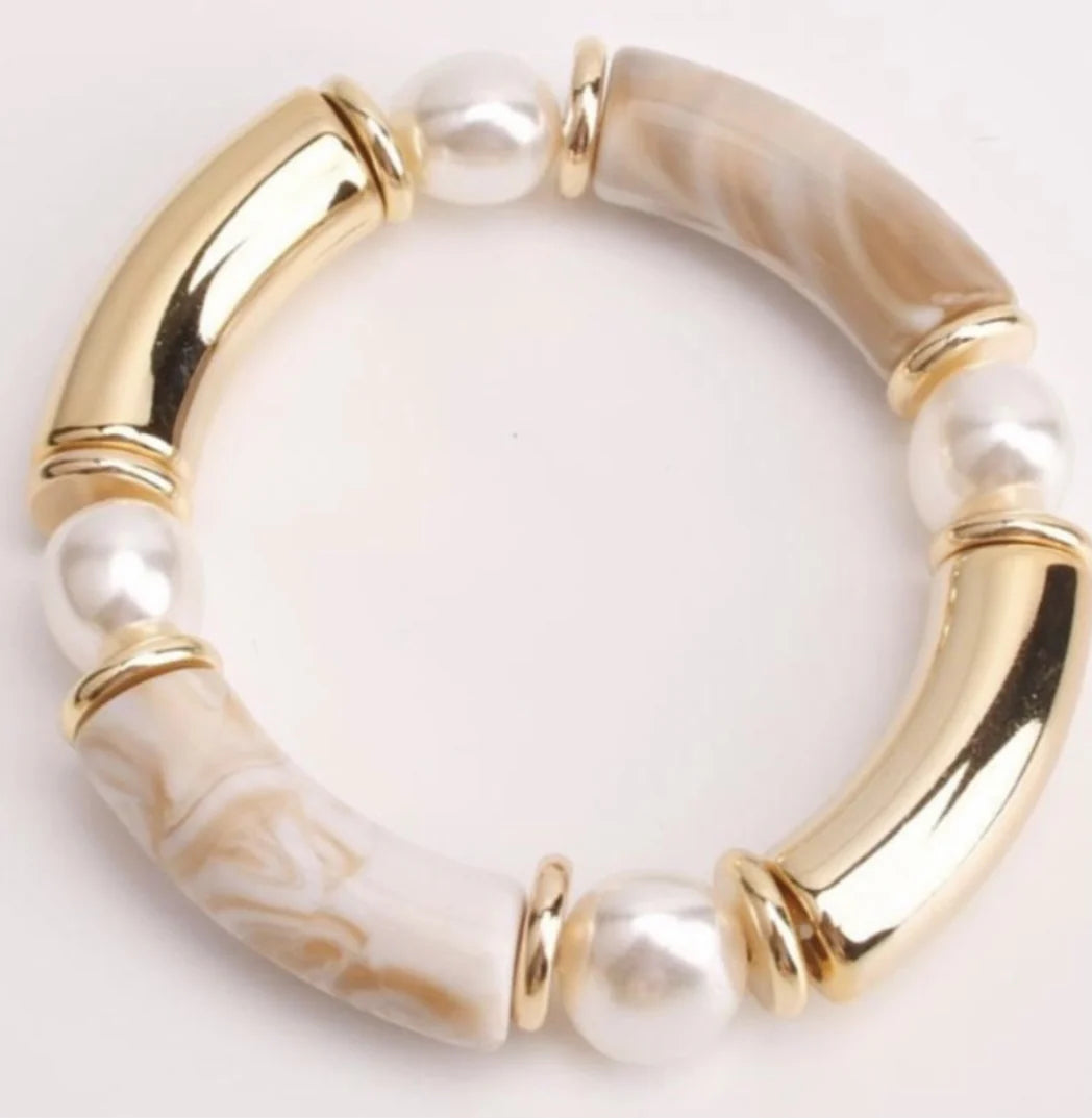 Gold Textured Stretch Bracelet With Silver Stamped Cross