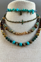 This unique piece of jewelry can be worn 5 different ways! The magnetic closure allows you to adjust this piece to your liking. You can wear it as one long necklace with the bottom piece being 3 layers of beautiful neutral beading. Take the top piece and wear it as a bracelet or a choker necklace. You can wear each piece separately or together to make a 4-layer necklace.