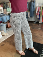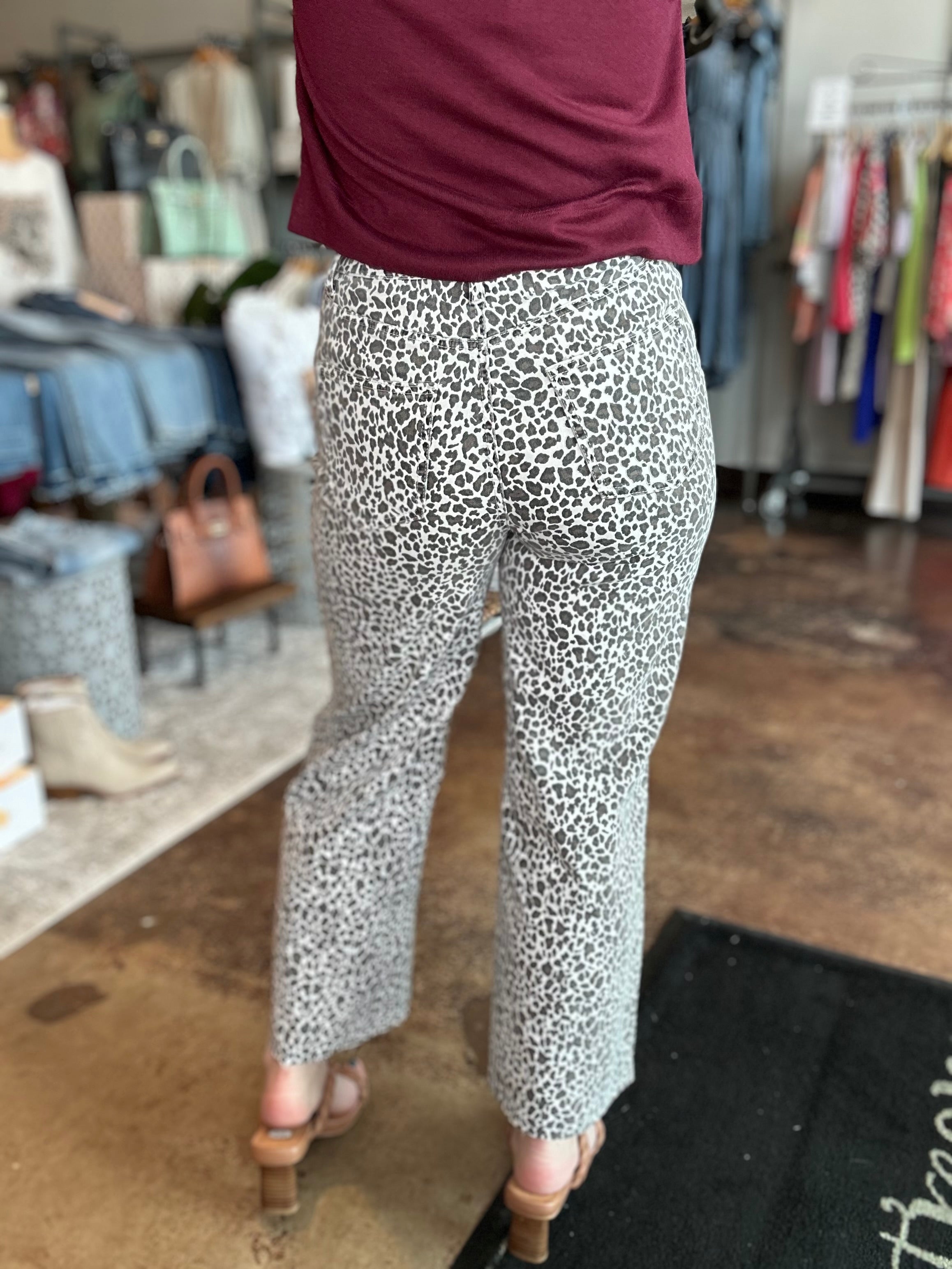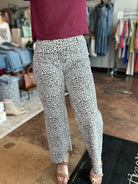 Tap into your boldest side with our Animal Print Button Fly Pants that command attention in the coolest way possible. The statement‑making five‑button front closure blends vintage charm with effortless edge, while the wide‑leg silhouette and raw‑cut hem give the look an air of relaxed sophistication. Thoughtfully designed with both front and back pockets, these pants fuse function with fearless style—making them ideal for pairing with sleek bodysuits or casual tees, and ready to take your outfit from desk to downtown with a confident flourish.
