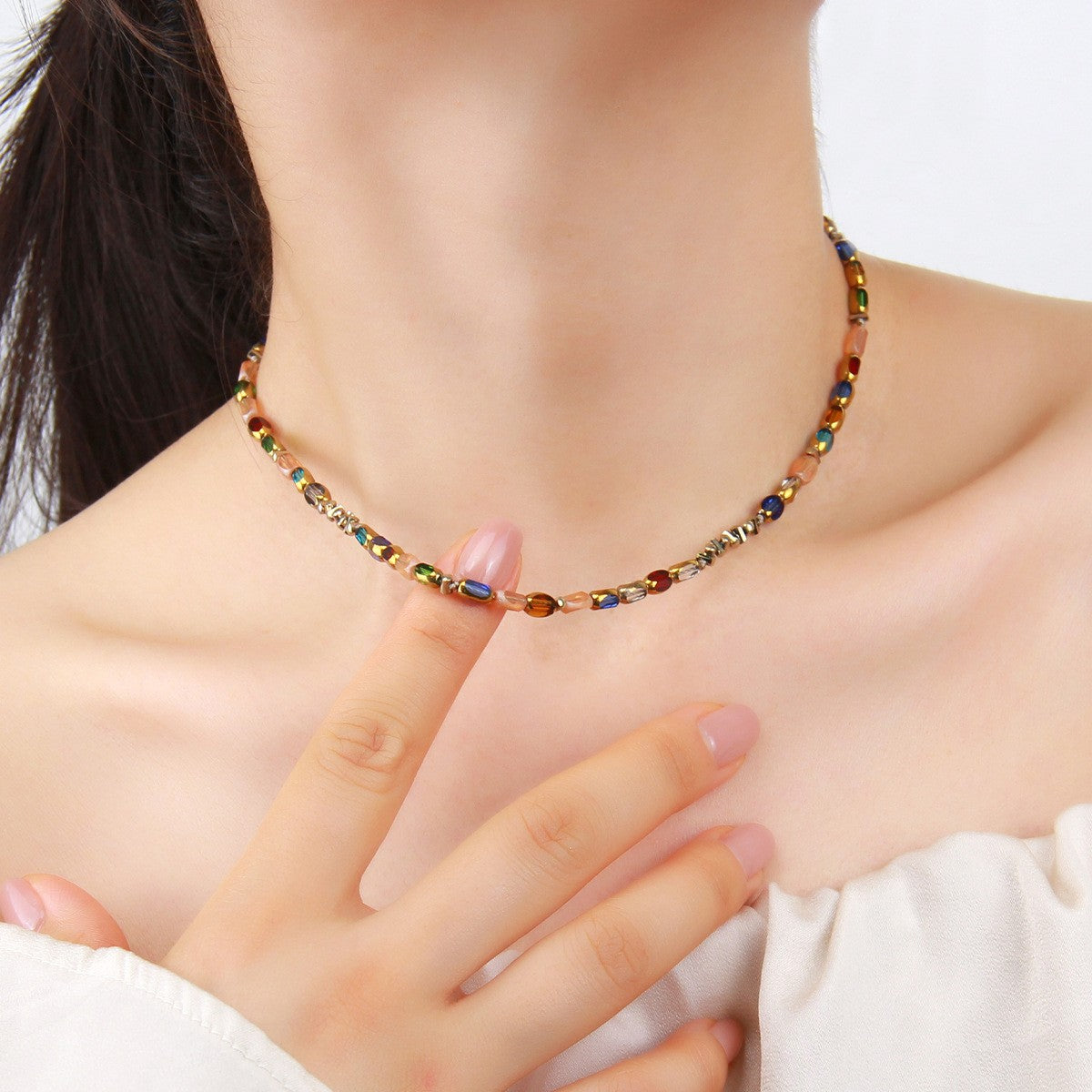 This beaded stainless steel necklace is the perfect balance of playful detail and everyday polish. Designed with a delicate strand of multicolor beads and finished in 18K gold plating, it adds subtle interest and texture while still feeling refined and easy to wear. Lightweight and thoughtfully crafted, this necklace layers beautifully or stands on its own as a simple statement.