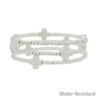 Elevate your wrist game with our Beaded With Cross Stretch Bracelet Stack, adorned with delicate 3mm round beads and subtle cross charms that blend faith and fashion. This stack is designed to be water-resistant, perfect for everyday wear—from morning workouts to unexpected summer showers. The ultra-sleek 3 mm bead size creates a refined, dainty look that layers beautifully or stands alone as a minimalist statement.