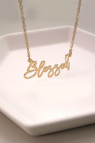 Make your layers personal with a lightweight and shimmering BLESSED necklace.