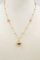 Clover And Pearl Beaded Necklace With Heart Pendant