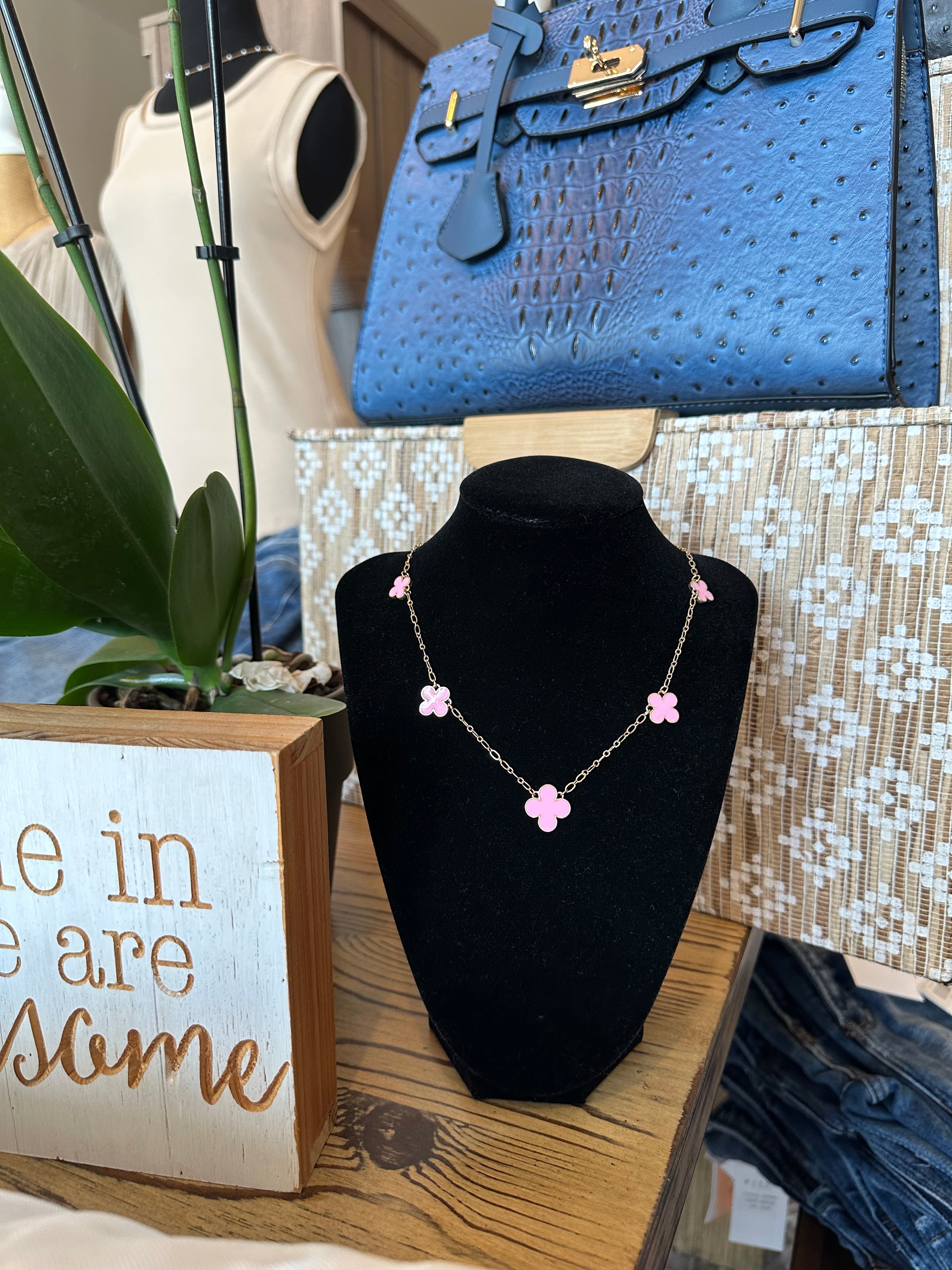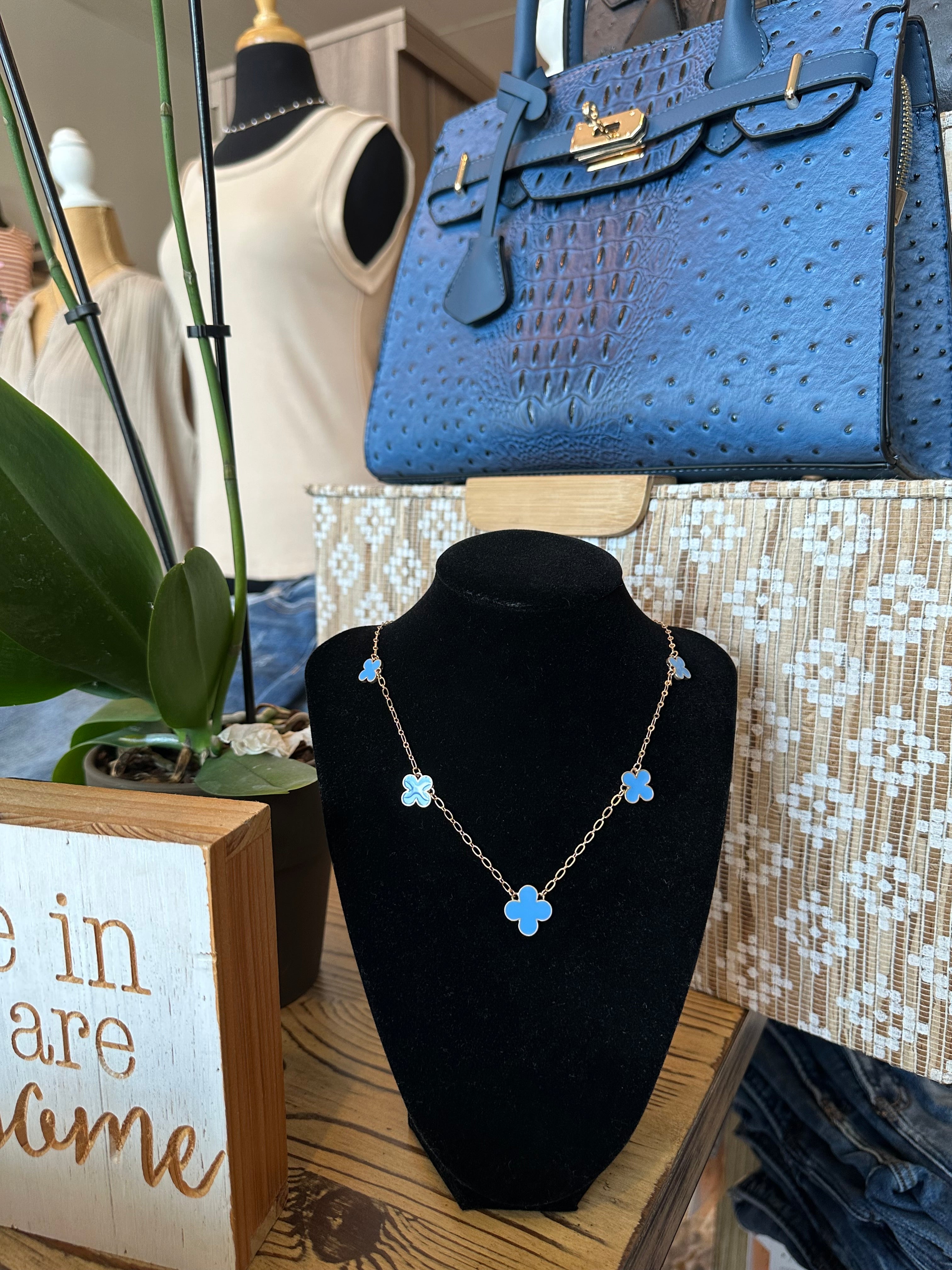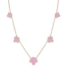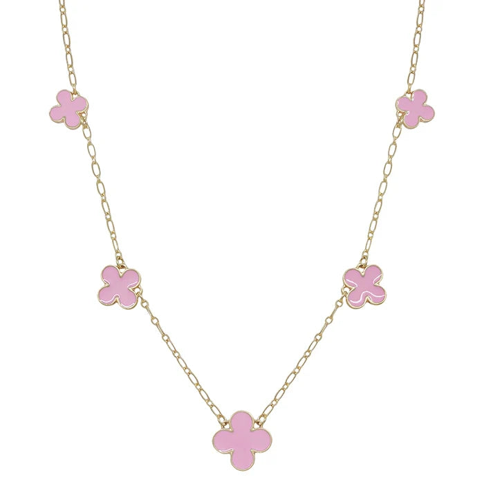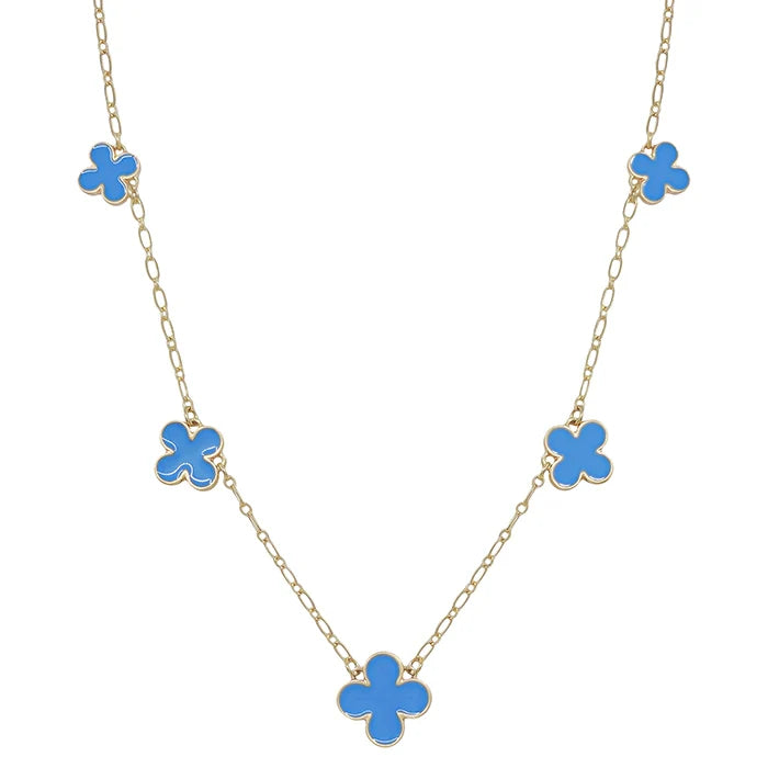 Add a dash of charm and polish to your everyday look with this delicate Clover Necklace. The petite clover pendants, dipped in enamel and framed with a fine gold outline, float gracefully on a slim gold-tone chain. Adjustable from 16″ to 18″, it layers beautifully or stands alone as a subtle statement piece. Finished with a water‑resistant plating, this necklace retains its fresh shine through daily wear.
