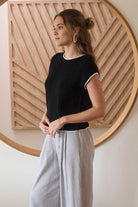 Contrast Trim Short Sleeve Sweater