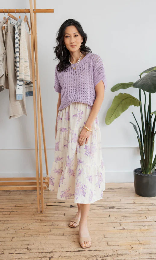 This lightweight lavender open-knit sweater is perfect for layering and adding a touch of texture to your outfit. Designed with a relaxed, boxy fit and a wide neckline, it offers a comfortable and effortlessly chic silhouette. The ribbed hem and cuffs add subtle structure to the soft, breathable fabric. Ideal for layering over a tank or bralette, this sweater pairs perfectly with jeans, skirts, or shorts for a stylish, casual look. A versatile piece that works for transitional seasons or breezy summer evenings!