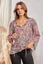 Embroidered w/ Tie Tassel Blouse