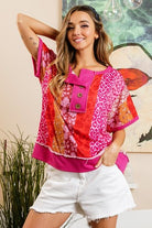 Fun, flattering, and full of color, it’s the perfect piece to dress up your denim or layer under a jacket for a pop of print.
