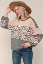 Stay effortlessly stylish and ultra-cozy in this Jacquard French Terry Color Block Pullover. Designed with a flattering round neckline and bubble long sleeves, this oversized top features a playful color block design and eye-catching jacquard knit and leopard print panels. The soft french terry fabric ensures all-day comfort, while exposed overlock outseam stitching adds a trendy, laid-back vibe. With its loose, oversized fit, this pullover is perfect for lounging or styling up with denim and boots for an elevated casual look.