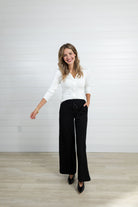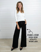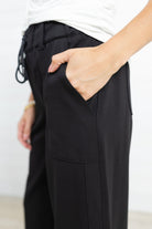 The Mac and Me Ponte Utility Wide Leg Pant is where comfort meets elevated style. Designed with a flattering high-rise fit and a flowy wide-leg silhouette, these pants offer effortless sophistication for workdays or weekends. Crafted from a luxe ponte knit fabric with just the right amount of stretch, they hold their shape while keeping you comfortable all day long. The utility-inspired patch pockets add a modern touch to this classic black staple—easy to dress up with heels or keep casual with sneakers.