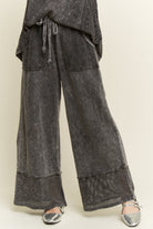 Our Mesh Detail Wide Leg Pants offer a relaxed yet refined silhouette, softened by a subtle mineral wash that gives each pair unique tonal depth. The mesh panels on the functional front pockets and hem create layered visual interest and a breezy feel. Designed with a roomy, straight wide-leg cut and an elastic waist, they deliver effortless pull-on comfort and easy styling. Perfect paired with a simple tee or a knit tank, these trousers elevate everyday looks with understated texture and sleek ease.