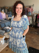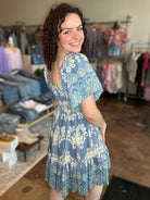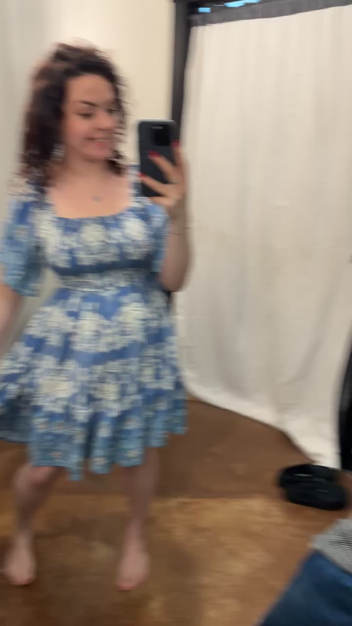 Meet your go‑to pick: our Short Sleeve Smocked Border Print Dress—where thoughtful design meets effortless charm. The dress begins with gentle smocking on the bodice and square neckline, letting soft gathers drape into a lively border print that frames the silhouette. Light short sleeves flutter just enough to add movement, blending relaxed ease with feminine appeal. The skirt falls just above the knee in a relaxed A‑line, allowing the border‑print design to shine without overwhelming the look.