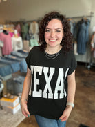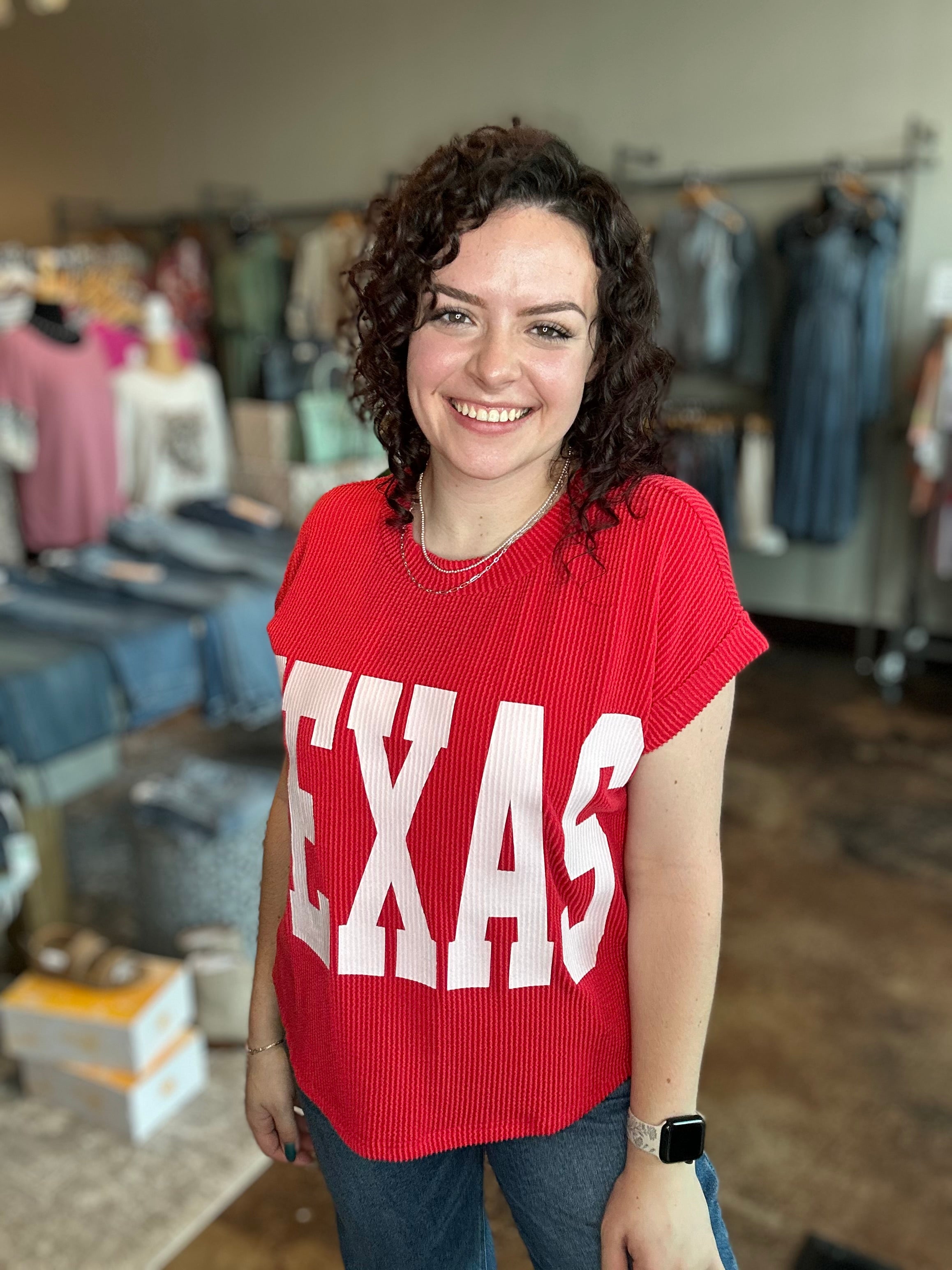 'TEXAS' Graphic Ribbed Knit Top