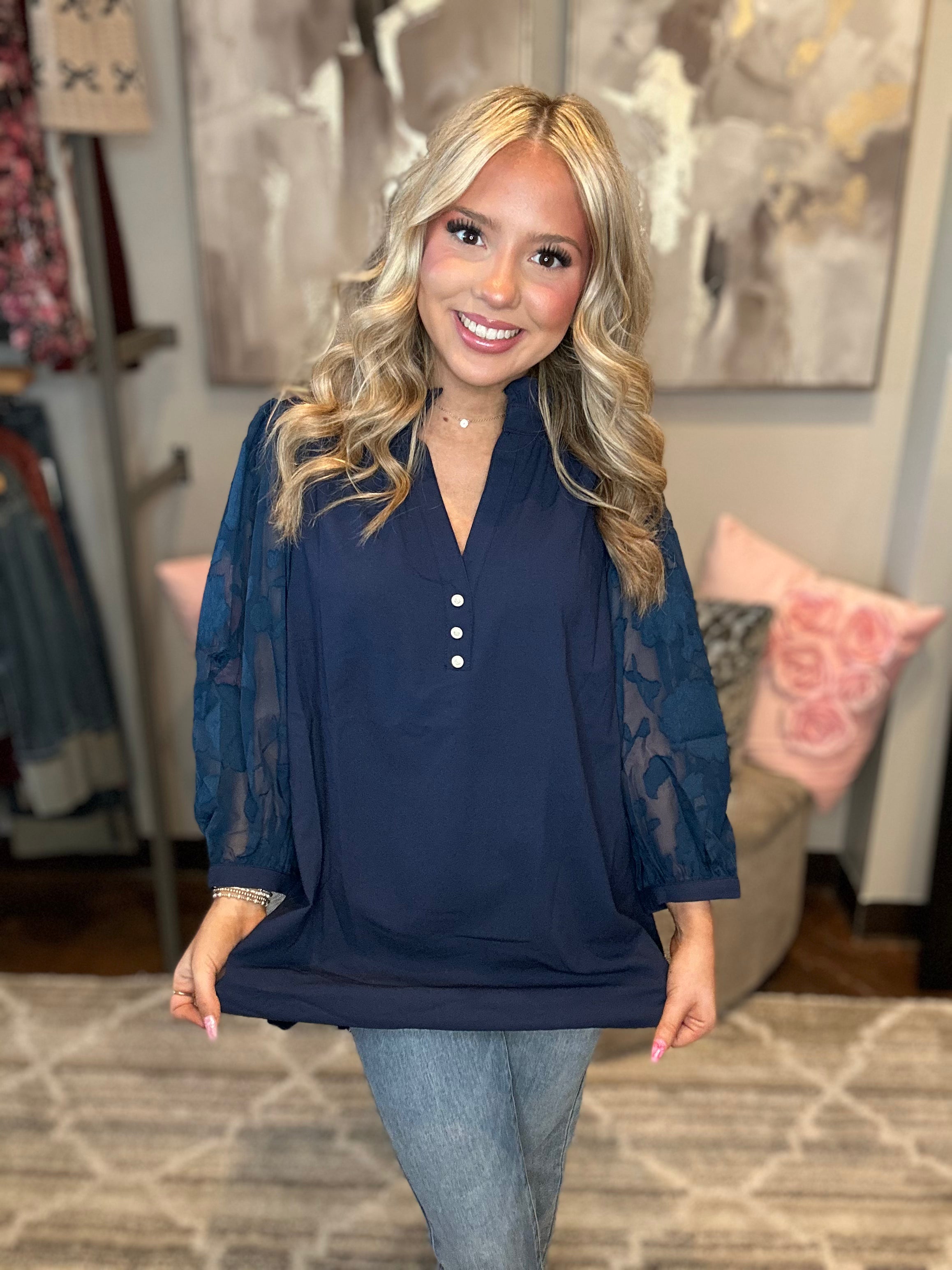 Get ready to turn heads with our V-Neck Puff Sleeve Tunic! Available in magenta and midnight, this stylish top features a flattering v-neckline and playful puff sleeves. Elevate your wardrobe with this must-have piece that will add a touch of fun and femininity to any outfit.