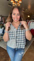 Featuring a washed navy and multi-color plaid, this top blends rugged charm with laid-back edge. The sleeveless cut and raw-edged details give it that perfectly worn-in, lived-in feel, while contrasting stripes add an unexpected touch of texture and style.