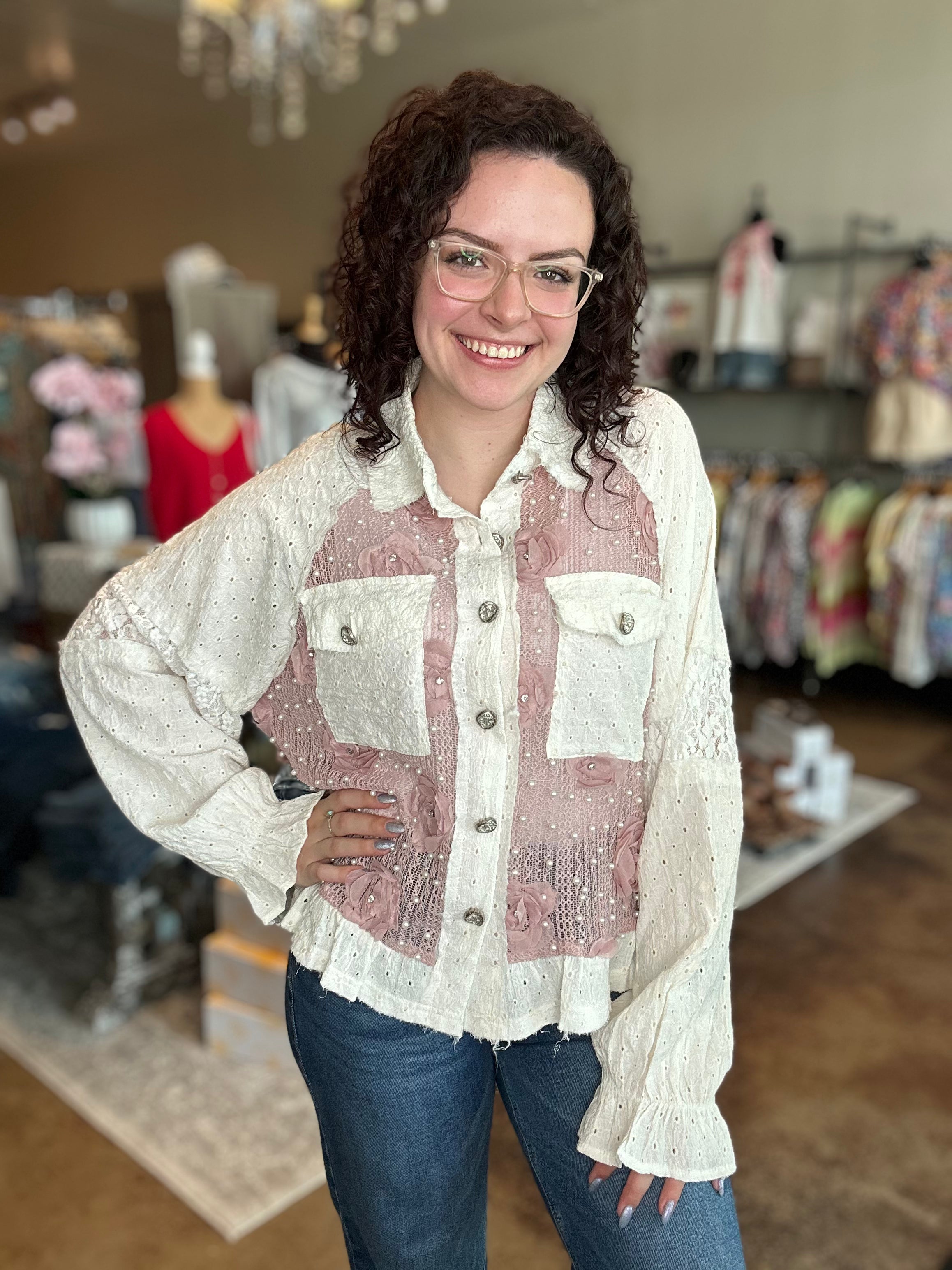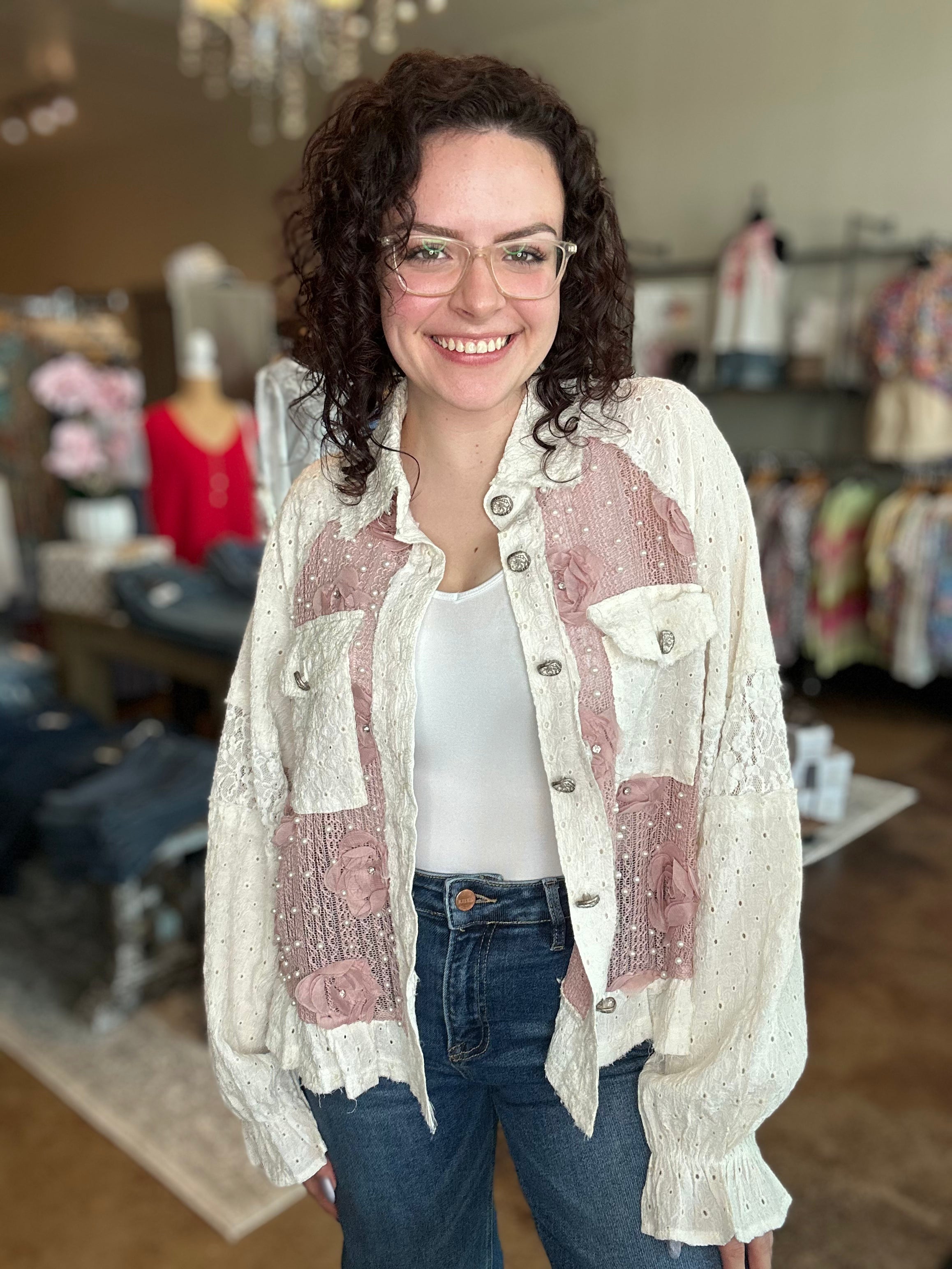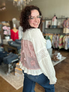 A statement piece with a vintage-inspired twist, our Vintage Washed Balloon Sleeve Jacket is crafted from textured woven fabric for a rich, tactile feel. The voluminous sleeves are finished with shirring and elastic cuffs for a soft, gathered shape, while a delicate lace patch adds an unexpected feminine contrast. Raw edge detailing throughout and a subtle vintage wash give it that perfectly lived-in look. Designed with a regular fit, metal button-down front, pearl accents, and functional front pockets, this piece blurs the line between jacket and top—perfect for layering or wearing on its own. Thoughtful construction and unique finishes make it a standout staple for everyday wear with character.
