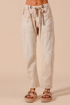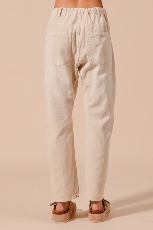 Vintage Washed Drawstring Slim Barrel Pants