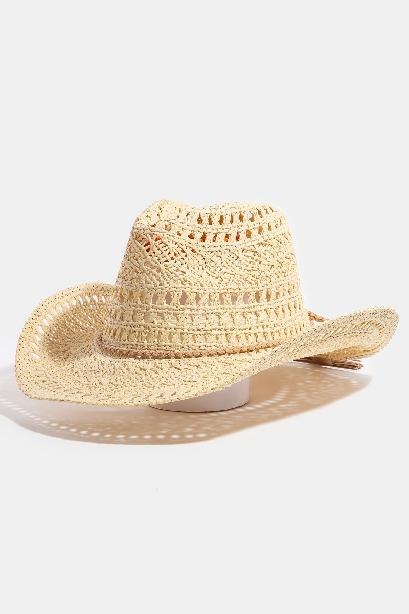 This Weaved Cowgirl Hat brings a unique intricate woven western fedora straw hat style. Indulge in the allure of exquisite craftsmanship as this fedora hat effortlessly adds a touch of luxury to your attire.