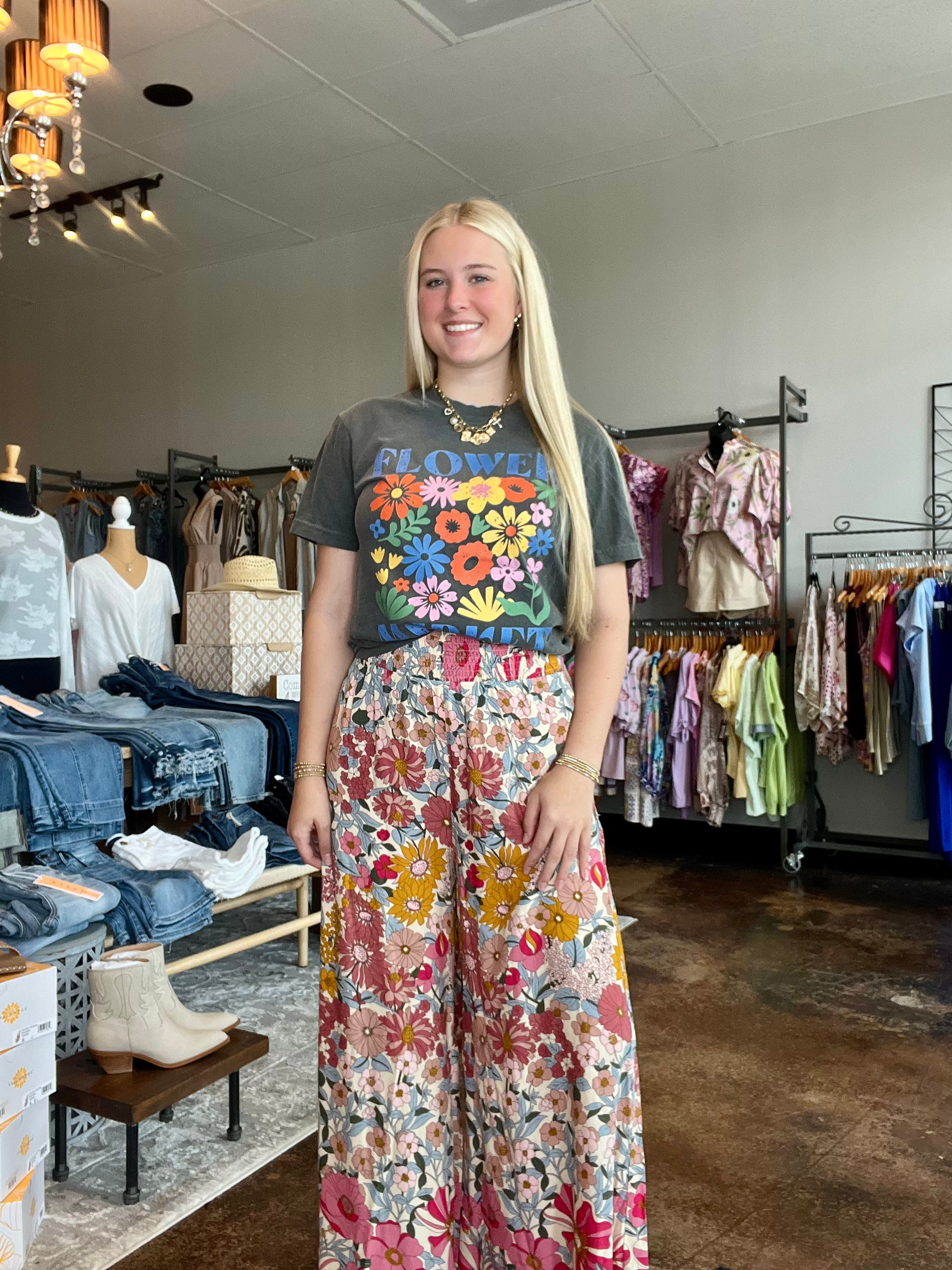Breeze through your day in these Wide Leg Smocked Waist Pants, where comfort meets effortless charm. The wide-leg design flows beautifully with every step, while the smocked waist offers a flattering, flexible fit. A side pocket adds a practical touch without compromising the relaxed elegance of the look. Perfect for weekend strolls or casual outings, these pants bring a soft romantic feel to any outfit.